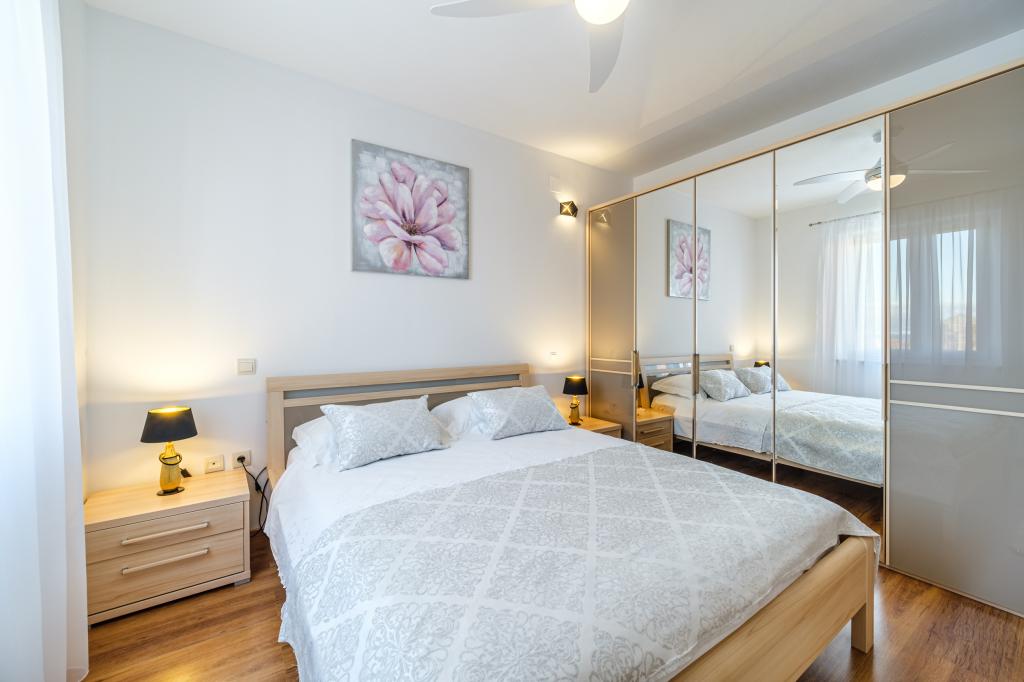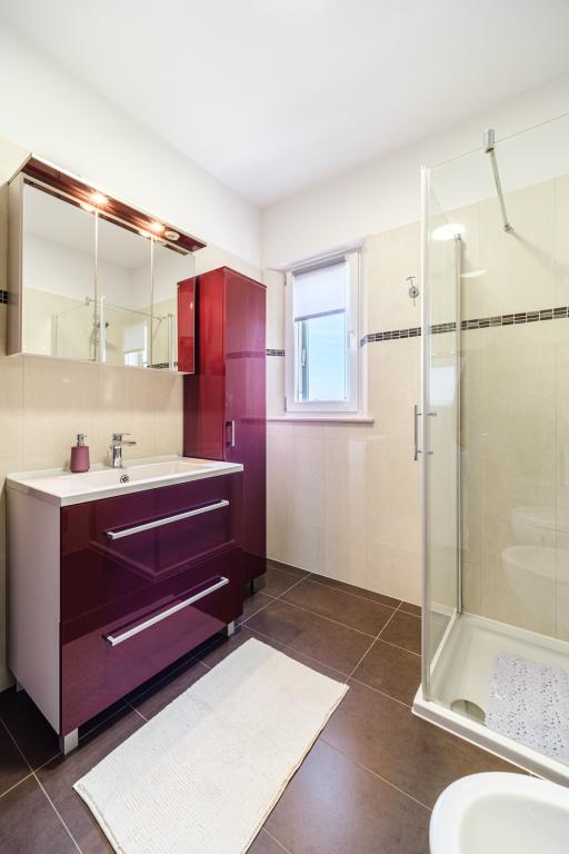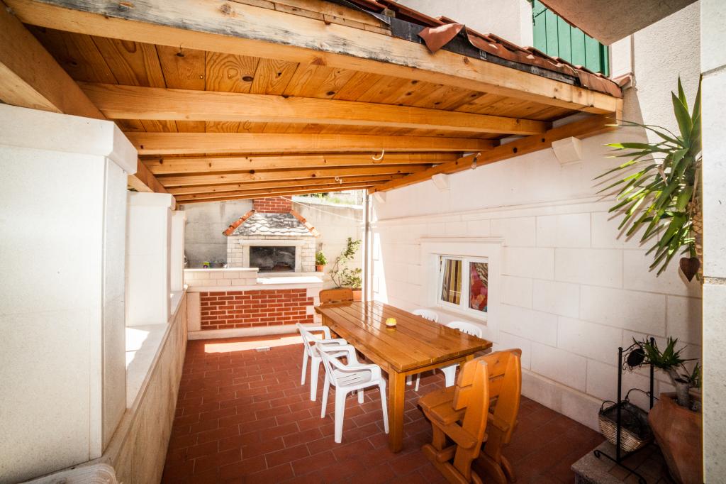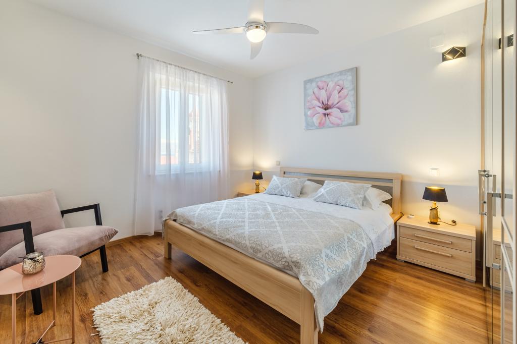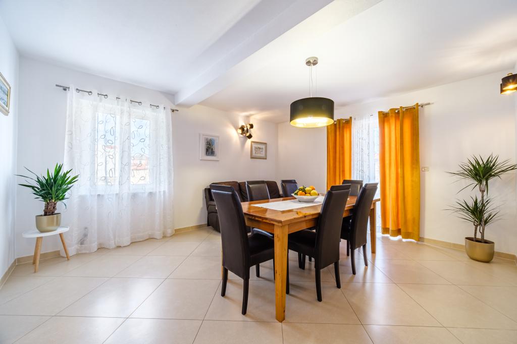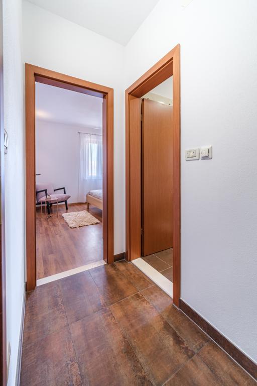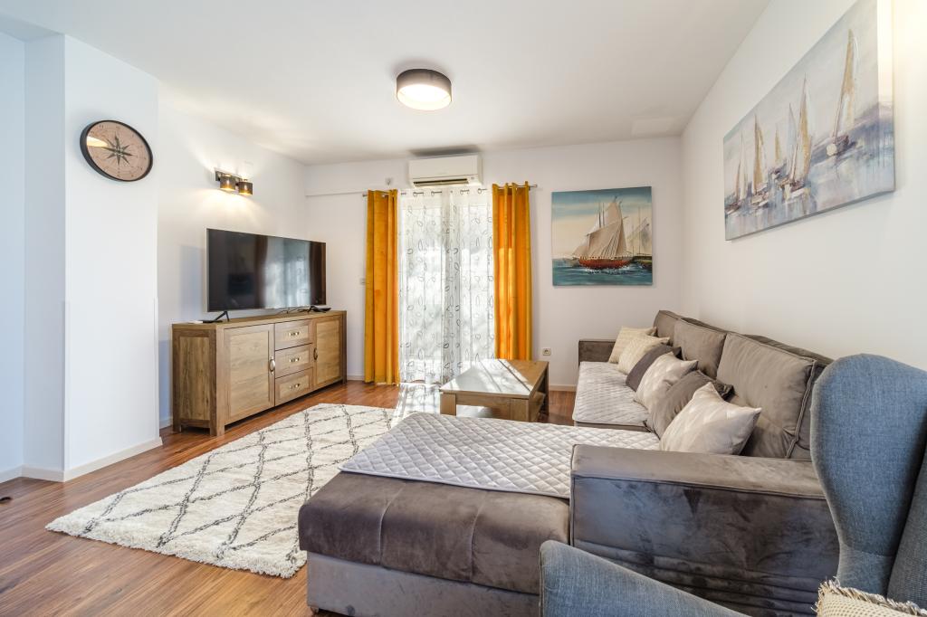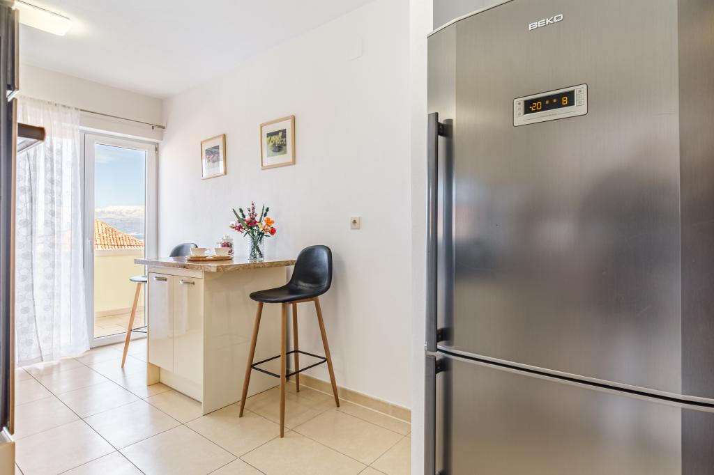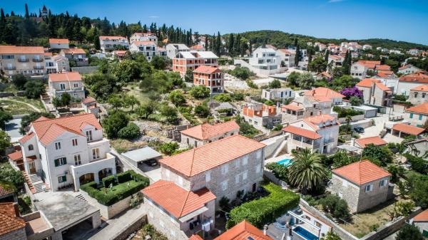 W pełni nowocześnie wyposażony apartament w luksusowym domu w spokojnej dzielnicy Sutivan, położony w samym centrum miasta, w drugim rzędzie od morza. Obiekt jest położony 2 minuty spacerem od pierwszej plaży, w samym centrum miasta. Obiekt oferuje usługi noclegowe w jednym apartamencie. W apartamencie może nocować 6 osób, a w razie potrzeby na dostawce mogą nocować jeszcze dwie osoby. Do apartamentu przynależy miejsce parkingowe w garażu. Obiekt oferuje usługi grillowania, specjalnie wyposażoną jadalnię, bar i zlew. Apartament posiada dwa tarasy, z czego jeden o powierzchni 20 m2 z widokiem na morze, a drugi od strony południowej o powierzchni 8,5 m2. Obiekt oferuje pralnię. Apartament składa się z 3 sypialni, 2 łazienek i jednej dodatkowej toalety. Salon i jadalnia stanowią jedną przestrzeń o powierzchni 50 m2.