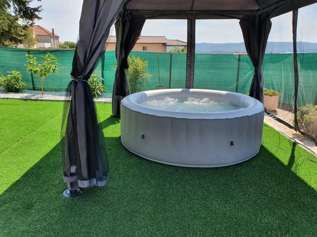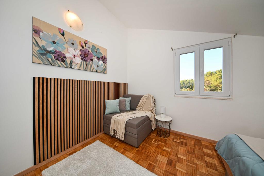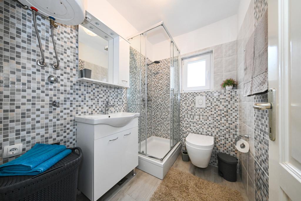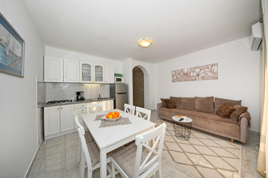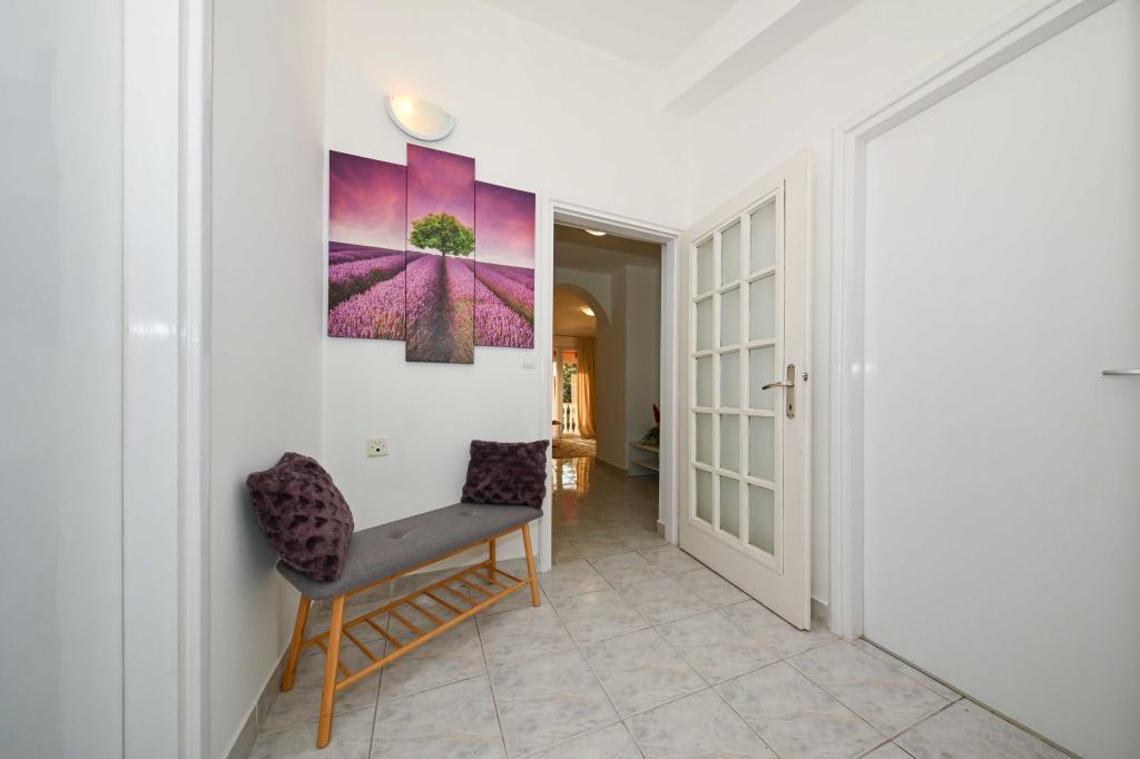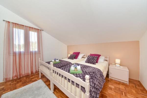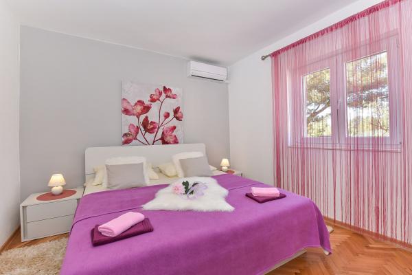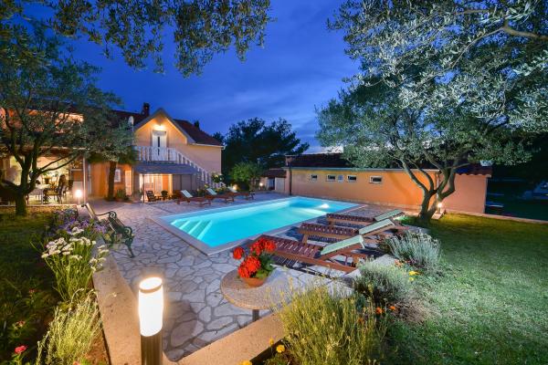 Daj nam szansę i swoje niezapomniane wakacje będzie doświadczenie tylko przez nas. W naszych apartamentach znakomicie krajobrazowy w pobliżu sosnowego lasu i morza twój urlop będzie kompletna. Promenada i pobliski widokowa, ścieżki rowerowe, w pobliżu parku przyrody Jezioro Vrana i Parków Narodowych Kornati i Krka wodospady, starożytne miasta Zadar i Sibenik, z pewnością spełni oczekiwania nawet najbardziej wymagających gości. Nasz kompleks jest wielkości 2500m2, w otoczeniu drzew oliwnych i lasów sosnowych. Z dziedzińca znajduje się ładny widok na morze Pasman Channel. Na terenie obiektu znajduje się: • dom rodzinny, w którym znajdują się dwa oddzielne mieszkania (dla 4 i 6 osób). • Apartamenty wyposażone są w klimatyzację, TV, bezprzewodowy dostęp do Internetu oraz tarasem z widokiem na morze i basen. • Basen: Obok domu znajduje się basen z pięknym otoczeniu i leżakami • Basen znajduje, są dwie łazienki z prysznicem i dwie łazienki, wydzielone miejsce do prania, który jest Opremjen z pralka i
