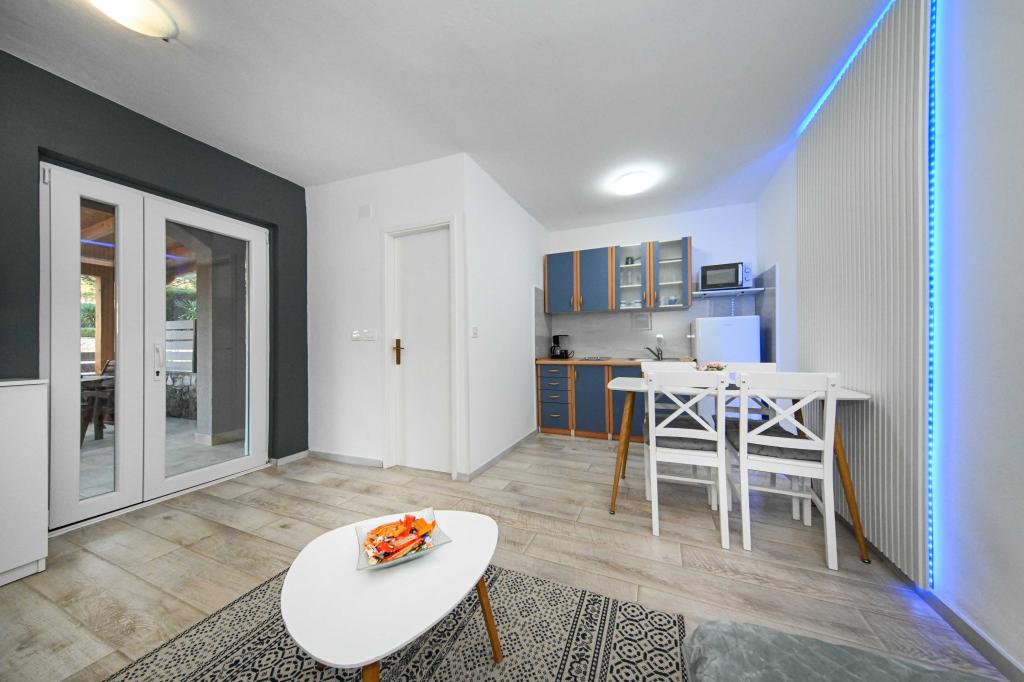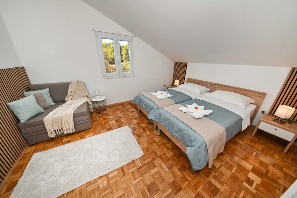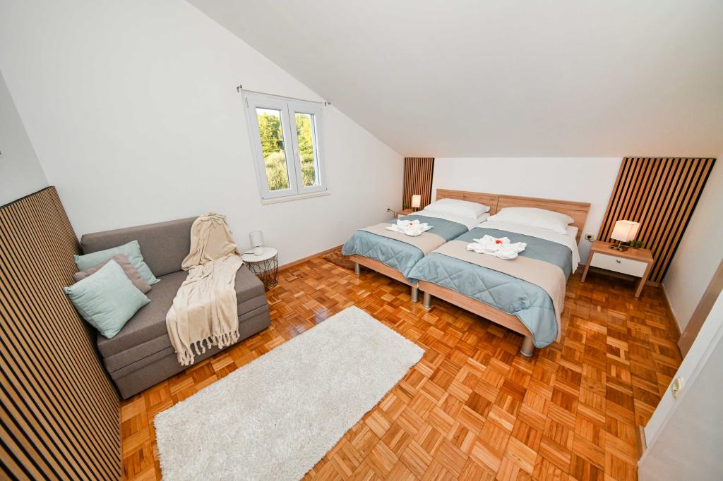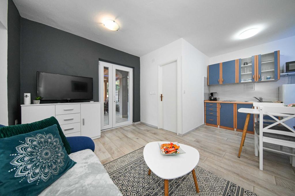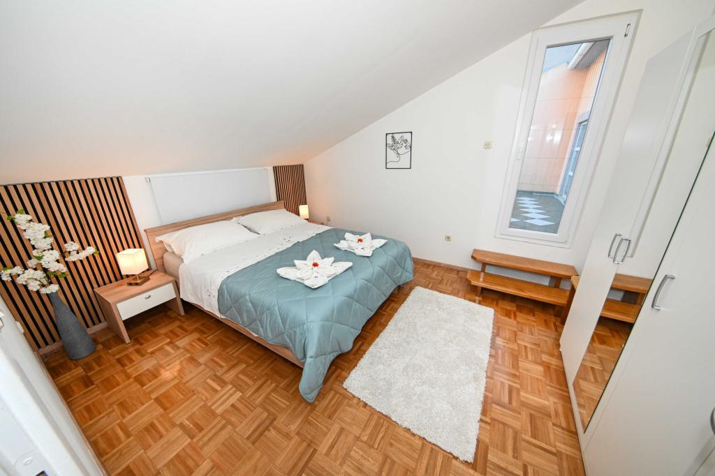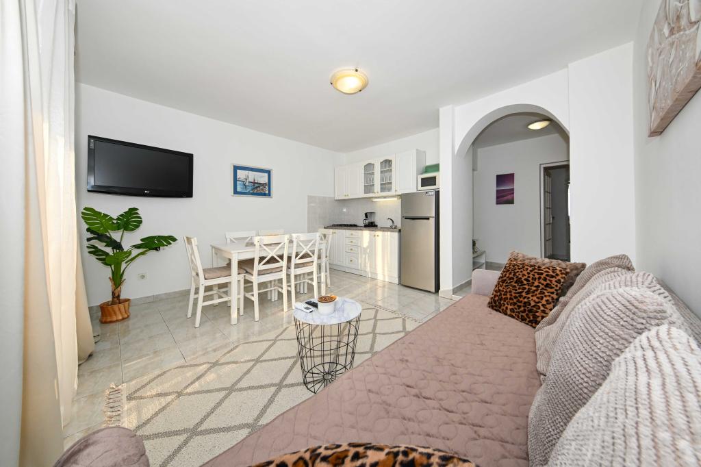 Daj nam szansę i swoje niezapomniane wakacje będzie doświadczenie tylko przez nas. W naszych apartamentach znakomicie krajobrazowy w pobliżu sosnowego lasu i morza twój urlop będzie kompletna. Promenada i pobliski widokowa, ścieżki rowerowe, w pobliżu parku przyrody Jezioro Vrana i Parków Narodowych Kornati i Krka wodospady, starożytne miasta Zadar i Sibenik, z pewnością spełni oczekiwania nawet najbardziej wymagających gości. Nasz kompleks jest wielkości 2500m2, w otoczeniu drzew oliwnych i lasów sosnowych. Z dziedzińca znajduje się ładny widok na morze Pasman Channel. Na terenie obiektu znajduje się: • dom rodzinny, w którym znajdują się dwa oddzielne mieszkania (dla 4 i 6 osób). • Apartamenty wyposażone są w klimatyzację, TV, bezprzewodowy dostęp do Internetu oraz tarasem z widokiem na morze i basen. • Basen: Obok domu znajduje się basen z pięknym otoczeniu i leżakami • Basen znajduje, są dwie łazienki z prysznicem i dwie łazienki, wydzielone miejsce do prania, który jest Opremjen z pralka i