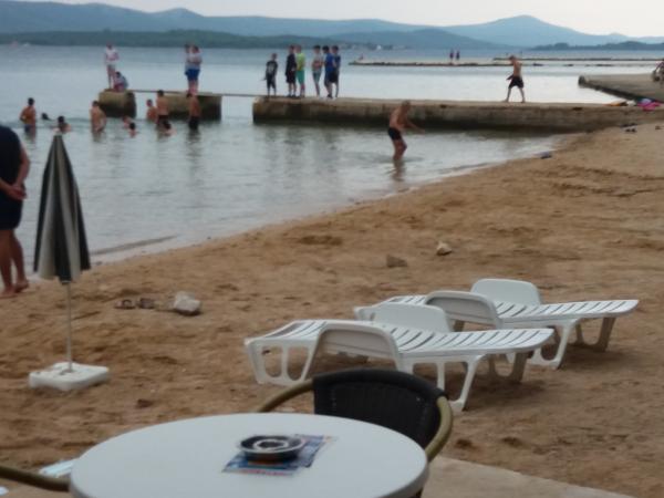 Opłata nie wliczone w cenę.Tamaris: Na piaszczystym wybrzeżu, jest domem dla naszej małej restauracji, w której oferujemy następujące: Możliwość śniadania i obiadokolacji dla naszych gości, Możliwość poszczególnych posiłków - dla naszych gości w przystępnych cenach, Możliwość wynajmu leżaków i parasoli, Możliwość organizowania różnych uroczystą kolację, Parking Hotel blisko plaży, Piaszczysta plaża jest bardzo odpowiedni dla dzieci i dorosłych. Dodatkowa oferta: Możliwość łowienia na morzu, możliwość wynajęcia łodzi, Możliwość wycieczki na Kornati i innych miejsc Jazda z łodzi podwodnej