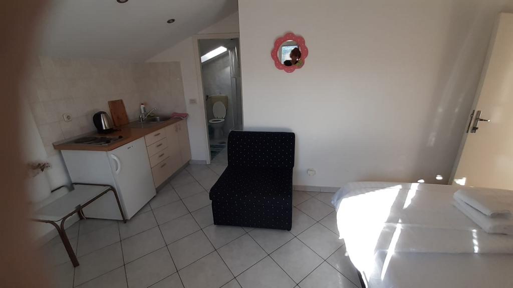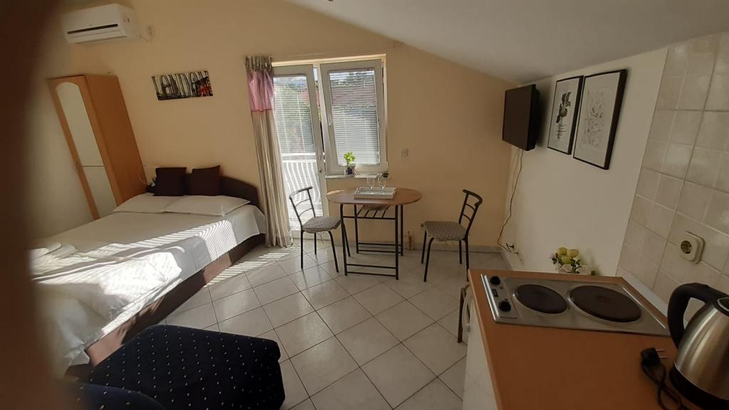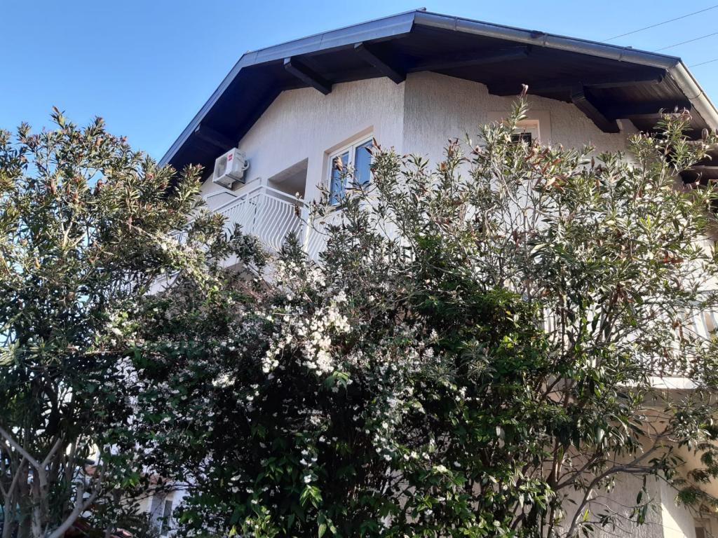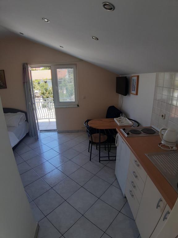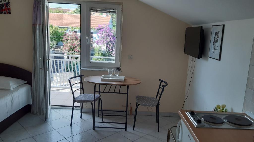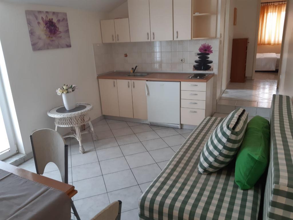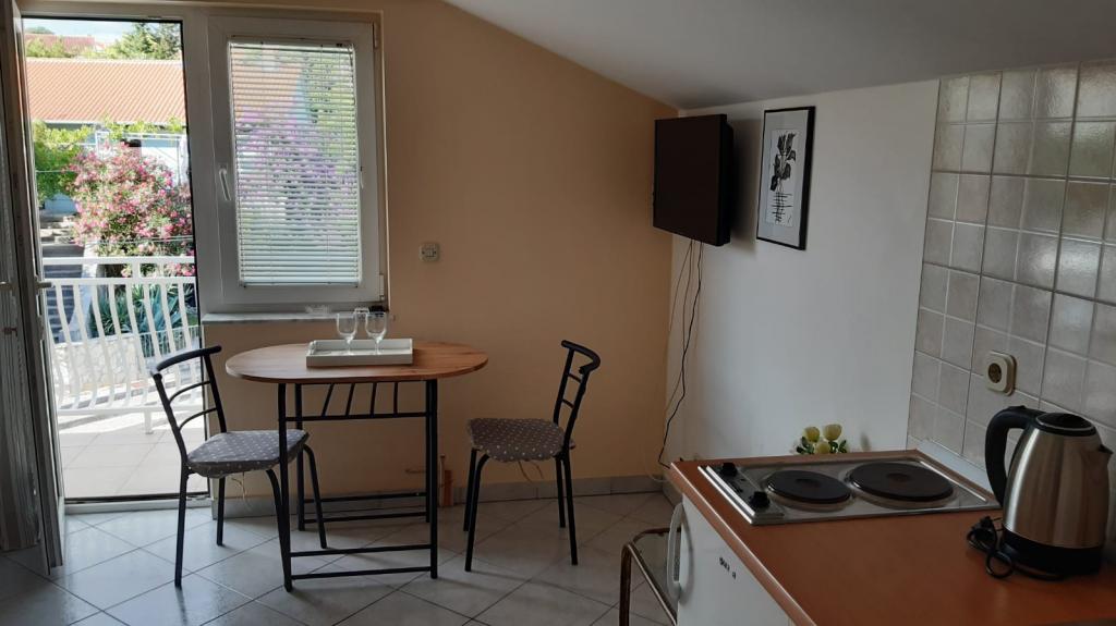 Mieszkanie znajduje się na pierwszym piętrze domu jednorodzinnego w centrum małego miasteczka. W 3-5 minut można dotrzeć do nabrzeża, poczty, banku, kościoła, lekarzy, placów zabaw dla małych sportów. Plaża zaczyna się od nabrzeża i rozciąga się na lewo i na prawo. Plaża jest odpowiednia dla wszystkich grup wiekowych. Apartamenty posiadają własny parking. Ze względu na bliskość innych obiektów samochód generalnie nie jest potrzebny. Apartamenty posiadają bezpłatny dostęp do Internetu, klimatyzację i są wyposażone w nowy SMART TV.