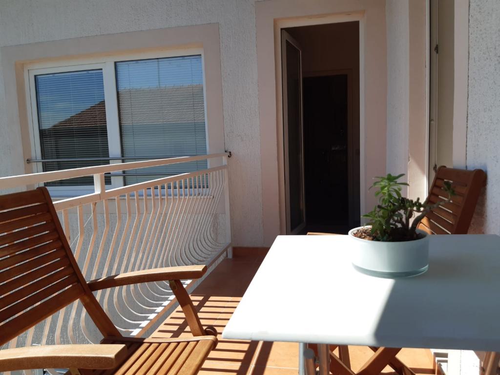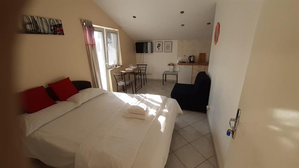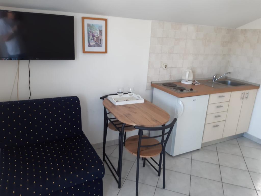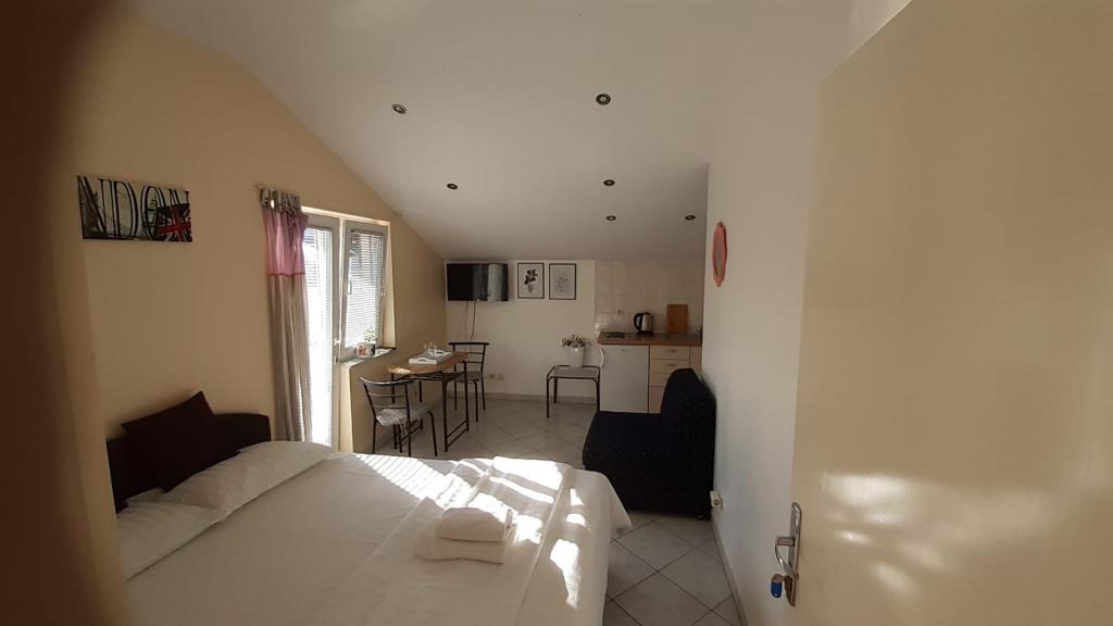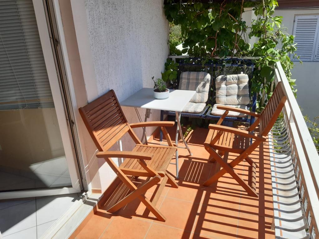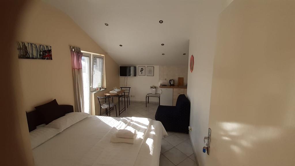 Mieszkanie znajduje się na pierwszym piętrze domu jednorodzinnego w centrum małego miasteczka. W 3-5 minut można dotrzeć do nabrzeża, poczty, banku, kościoła, lekarzy, placów zabaw dla małych sportów. Plaża zaczyna się od nabrzeża i rozciąga się na lewo i na prawo. Plaża jest odpowiednia dla wszystkich grup wiekowych. Apartamenty posiadają własny parking. Ze względu na bliskość innych obiektów samochód generalnie nie jest potrzebny. Apartamenty posiadają bezpłatny dostęp do Internetu, klimatyzację i są wyposażone w nowy SMART TV.