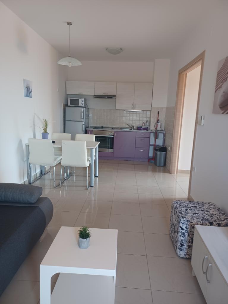 Apartamenty położone są zaledwie 100 metrów od morza i plaży, w tętniącej życiem, letniej atmosferze, idealnej dla gości, którzy chcą być blisko wydarzeń i poczuć prawdziwy śródziemnomorski rytm. Wieczorami można cieszyć się muzyką i spacerować wzdłuż wybrzeża, a w ciągu dnia relaksować się na plaży lub na prywatnym balkonie. Apartament jest przestronny i komfortowy, z wystarczającą ilością miejsca dla rodziny lub przyjaciół. Do dyspozycji gości jest bezpłatny parking, Wi-Fi, klimatyzacja i pralka. To idealne miejsce dla osób, które chcą połączyć komfort prywatnego zakwaterowania z bliskością wszystkich letnich udogodnień.