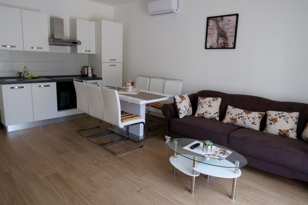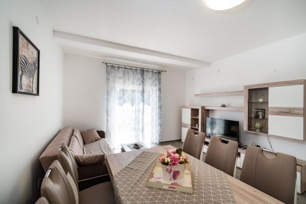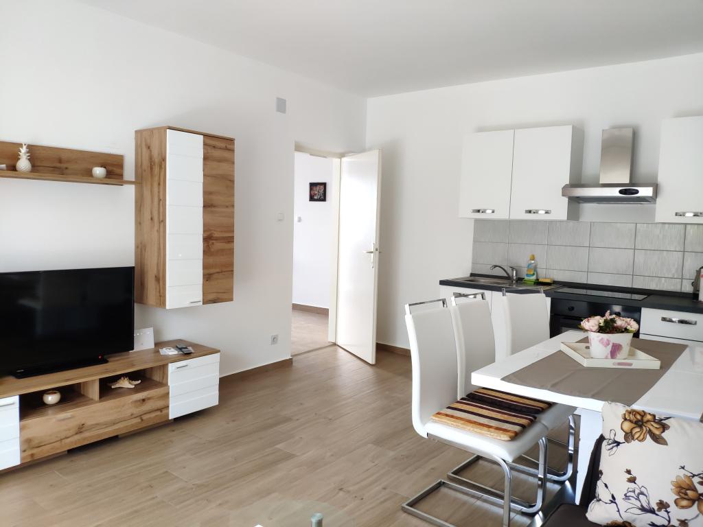 Apartament jest nowocześnie urządzony i znajduje się w niedawno odnowionym domu, zaledwie 150 metrów od głównej plaży i 200 metrów od centrum. Pokoje są przestronne i słoneczne. W mieszkaniu znajduje się duży balkon z relaksującym „zielonym” widokiem. Plaże w Filip-Jakov są pięknie urządzone, w pobliżu mieszkania znajduje się betonowa, piaszczysta i żwirowa plaża.