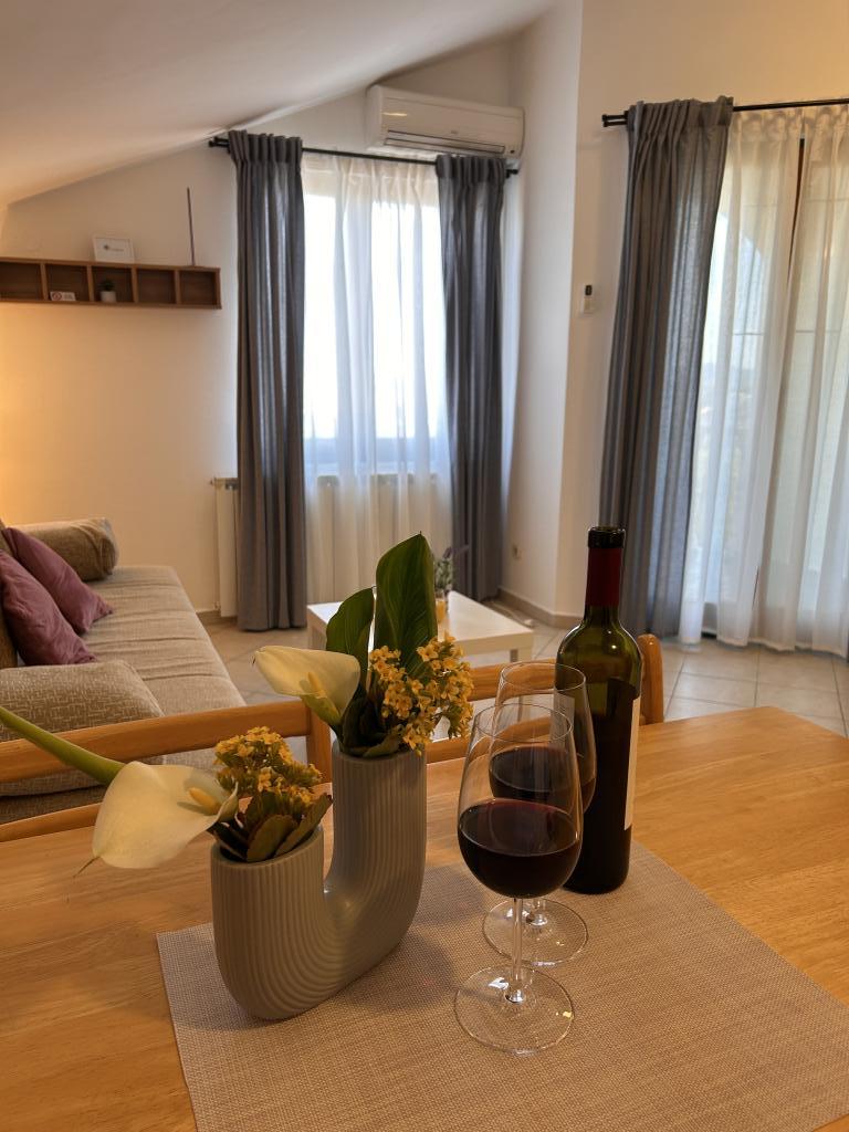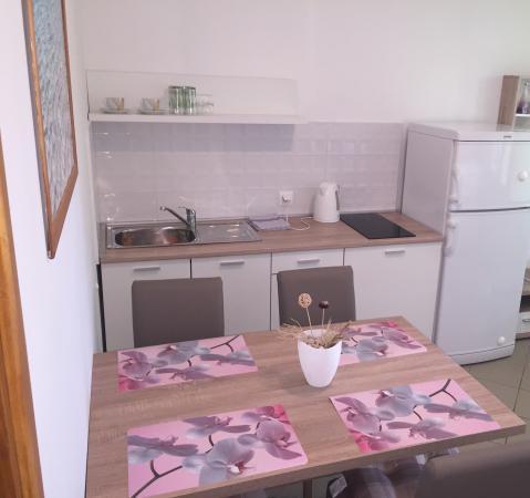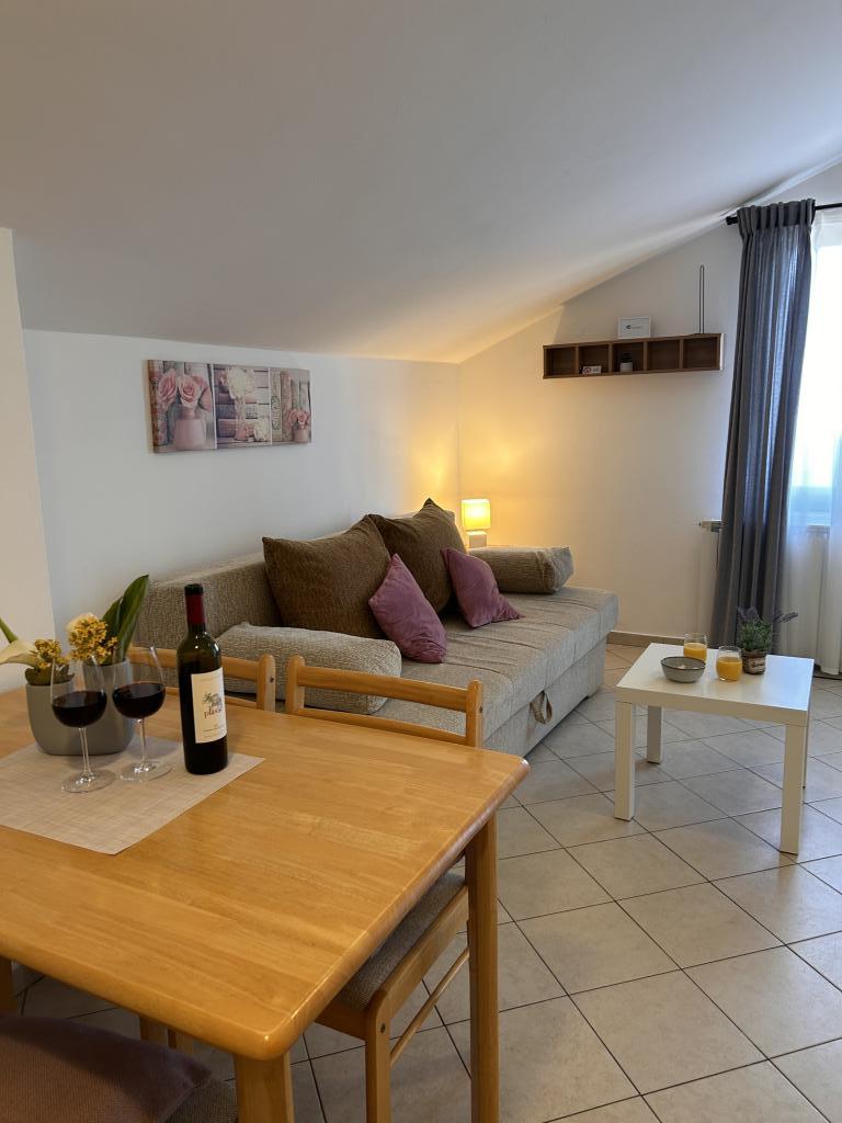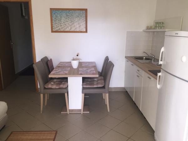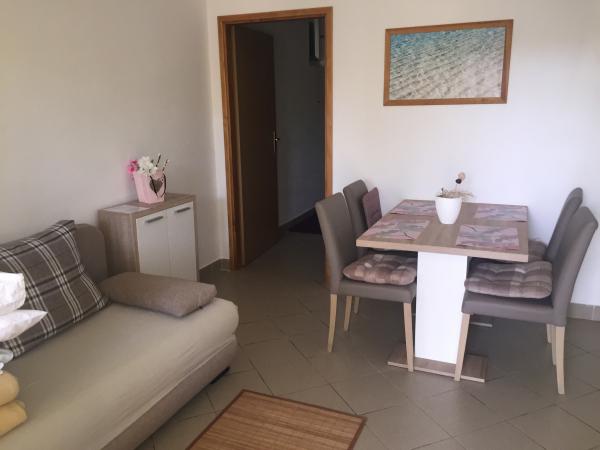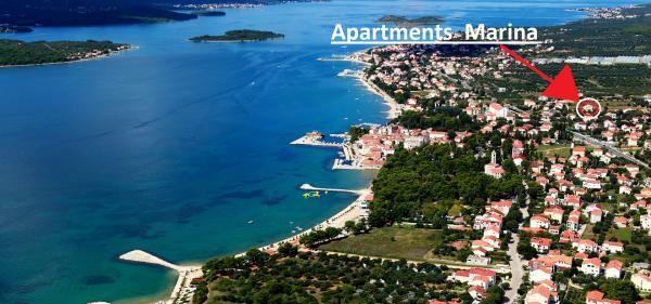 Witamy w Apartamenty Marina! Obiekt położony jest w bezpośrednim sąsiedztwie morza i centrum, zaledwie 5 minut spacerem. Otoczony jest gajami oliwnymi i łąkami. Do hipermarketu Plodine jest tylko 100 m, do restauracji polecamy pizzerię/bufet Torkul na samym początku centrum, naprzeciwko sklepu Tommy, a w ofercie jest wiele innych. W naszej ofercie znajdują się cztery apartamenty: Orchidea, Mirta, Lavender i Green. Orchidea to nowo umeblowane mieszkanie zlokalizowane na parterze domu, przed apartamentem mamy kuchnię na świeżym powietrzu i taras.