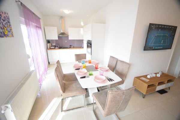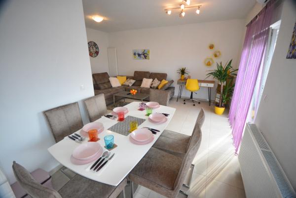 Mieszkanie ma nowe, czyste, schludne nowe meble i ogromny taras. Wszystkie udogodnienia obejmują kuchnię. Blisko plaży, w spokojnej okolicy. Paula i jej rodzina są bardzo mili. Dzięki, że wrócimy w przyszłym roku! Rodzina Hutvágnerów z Węgier