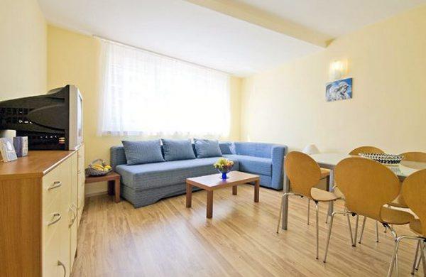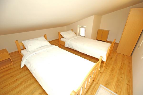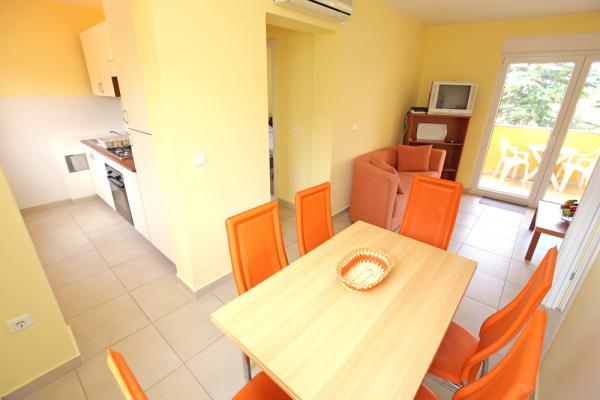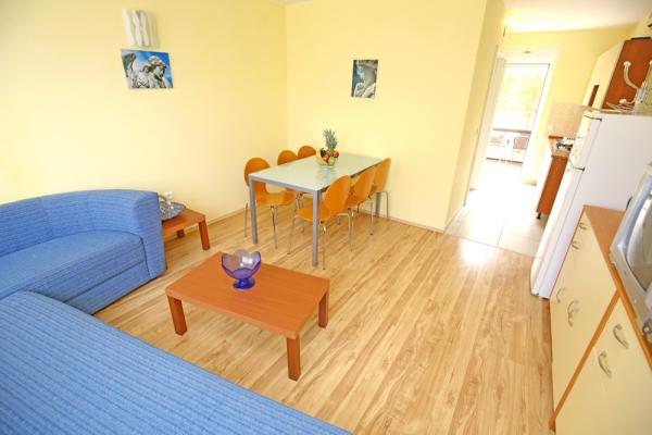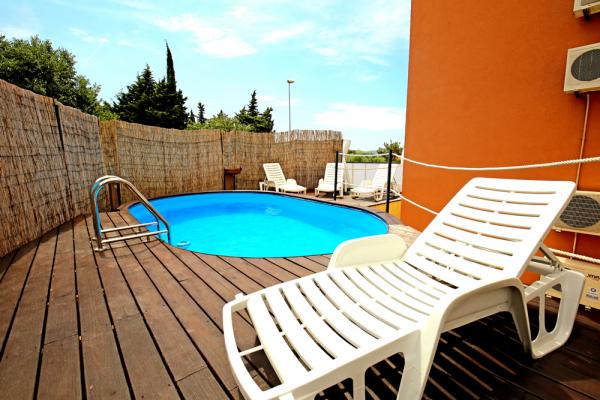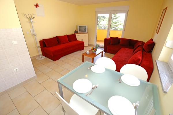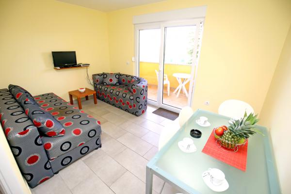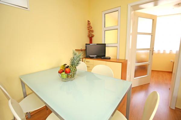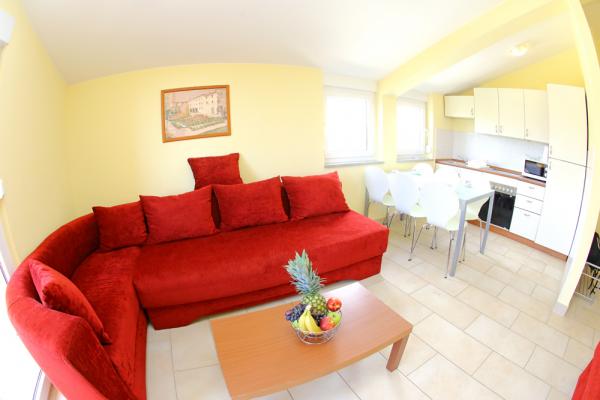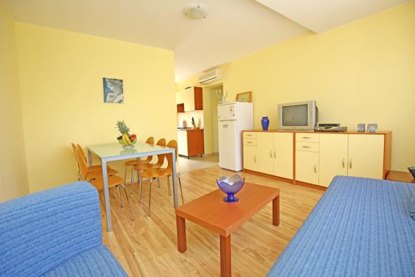 Wakacje na 12 rat - Mastercard, Maestro i Visa Zagrebacka banka W pełni wyposażone nowe klimatyzowane apartamenty, położone 350m od pięknej plaży głównej i centrum miasta. Supermarket, lekarz, apteka, restauracja i kościół znajduje się od 150 do 200 m, 100m przystanek autobusowy. Każdy apartament posiada własne miejsce parkingowe w naszym ogrodzonym parkingu. Apartamenty na wyższych piętrach mają balkony z widokiem na morze i możliwość korzystania wspólnego grilla, a mieszkania na parterze posiadają własny duży taras z prywatnym grillem. Wszystkie apartamenty wyposażone są w telewizor z dostępem do naziemnej telewizji cyfrowej i odbiorników satelitarnych oraz bezpłatny bezprzewodowy Internet (ryczałt). Mieszkanie znajduje się na liście A8 Plus 4 (z powodu ograniczeń dotyczących Apartmanija. DE) jest rzeczywiście apartament dla 18 osób, który składa się z 3 oddzielnych mieszkań, o łącznej powierzchni 162 m2. Apartament posiada własny basen, duży taras z dużym stołem i kanapą, grill oraz 3 miejsca parkingowe. Istnieje również opcja dla 12 osób.