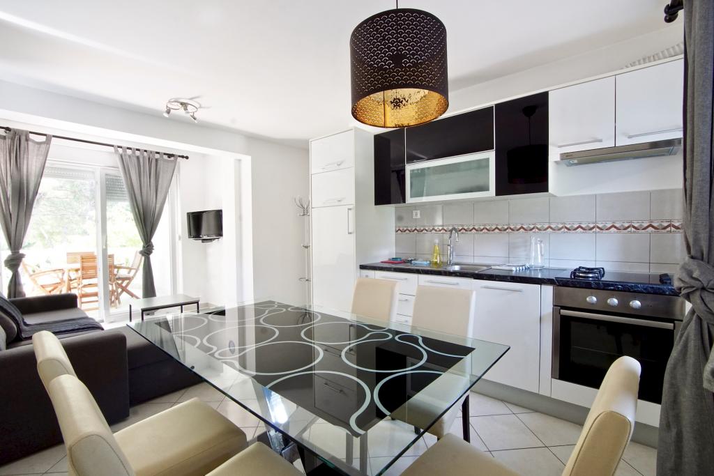 Opłata nie wliczone w cenę.Dodatkowe usługi i wyposażenie: ręczniki i pościel, kuchnia wyposażona w naczynia, łóżeczko, żelazko i deska do prasowania, sprzątanie i sprzątanie mogą ulec zmianie. Obiekt otoczony jest zielenią w pięknym, przestronnym dziedzińcu. Na podwórku znajduje się grill i stół z krzesłami. Za budynkiem znajduje się 8 miejsc parkingowych. Grill i parking jest bezpłatny. Na wybrzeżu można wypożyczyć łodzie na wyjątkowe zwiedzanie wyspy, organizowane są również wycieczki do Kornatów, a do słynnego i znanego na całym świecie Parku Narodowego Krka jest około 30 km. W oddalonym o 2 km Biograd na moru znajduje się duża dyskoteka z 3 dużymi hipermarketami. Około 25 km od nas znajduje się miasto Zadar, które koniecznie trzeba doświadczyć.