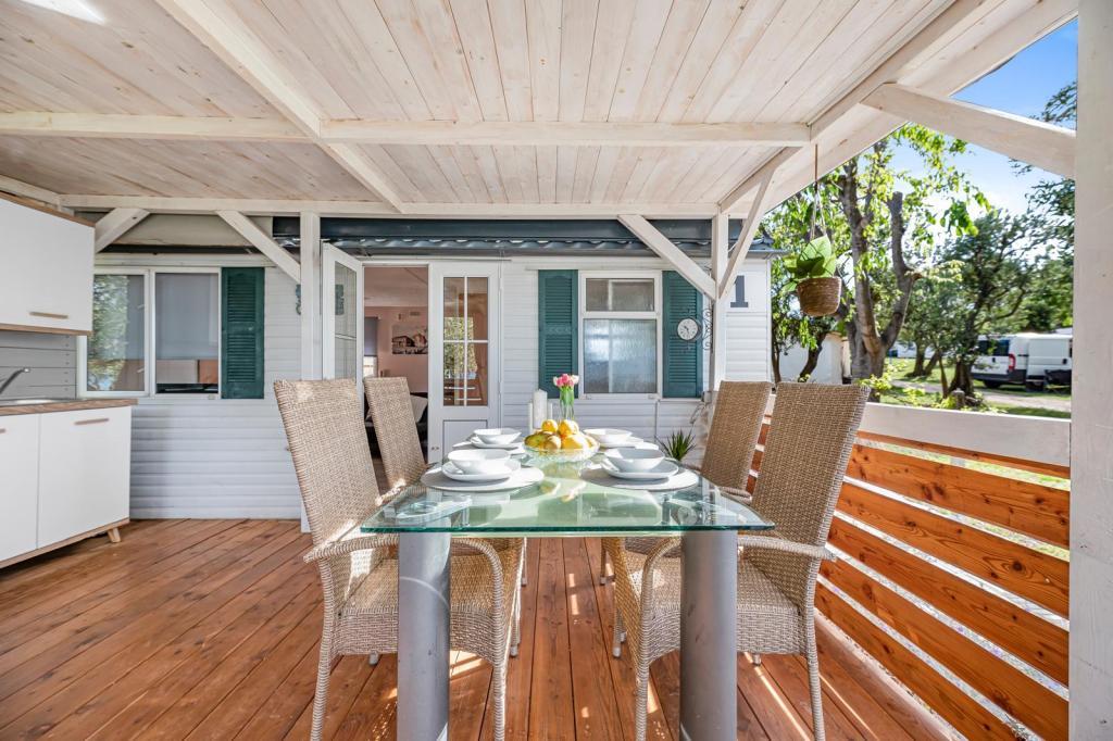 Domki mobilne położone są bezpośrednio przy plaży i są prawdziwą oazą spokoju i natury. Centrum miasta oddalone jest o 200 metrów, a przyczepa kempingowa oferuje pełne wyposażenie i miłą atmosferę.