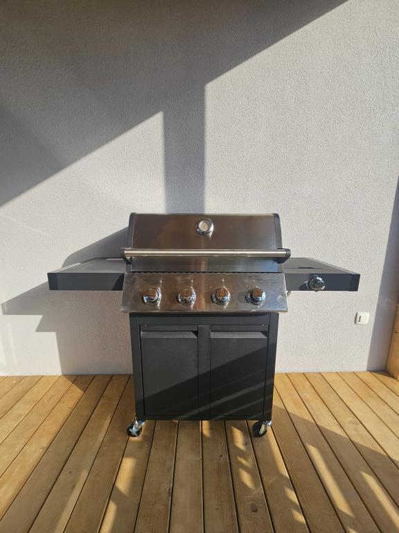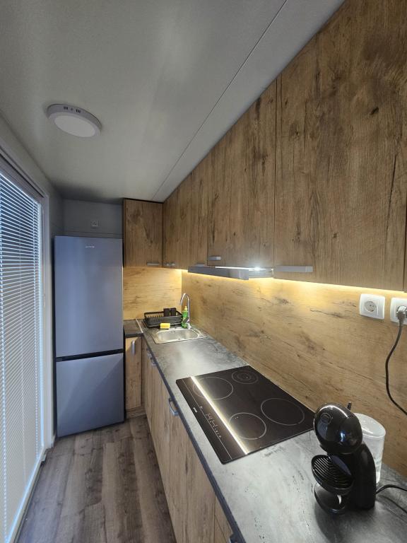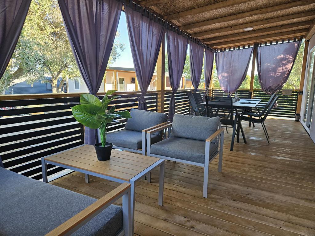 Nowoczesny dom mobilny. Obiekt położony jest w spokojnej i małej miejscowości, bardzo blisko pięknej plaży. Widok na morze, duży umeblowany taras, grill gazowy na idealne wakacje. Składa się z 2 sypialni, łazienki, kuchni, salonu z rozkładaną sofą. Obiekt położony jest tuż nad brzegiem morza, 100 metrów od morza, restauracji i kawiarni, a zaledwie 500 metrów od sklepów, piekarni i targu rybnego zlokalizowanych w centrum. Goście mają dostęp do telewizji, Internetu, klimatyzacji, grilla gazowego, suszarki do włosów i bezpłatnego parkingu.