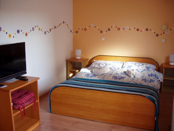 Opłata nie wliczone w cenę.Parking jest bezpłatny, strzeżony, wyłącznie dla gości. Na podwórku 2000 m2 mamy wolne miejsca na krzesłach pokładu, gdzie można cieszyć się w cieniu oliwek i orzecha włoskiego, a dzieci mogą bawić chronionych, a nie myśleć o ruchu. Na podwórku jest grill. Z obiektem restauracji, gdzie opłata, można mieć gorące i zimne napoje, zjeść śniadanie. W recepcji mamy sklep z pamiątkami, wypożyczalnia rowerów, wypożyczalnia samochodów i wycieczki do lokalnych atrakcji w muzeach i parkach narodowych bliskich do naszego stanowiska. Odległość od lotniska wynosi 30 km od portu w Biogradzie 3 km od parku rozrywki w Biograd 3 km od Parku Narodowego Krka, 75 km od Park Narodowy Jeziora Plitvice 150 stałego Vransko jezero 9 km.