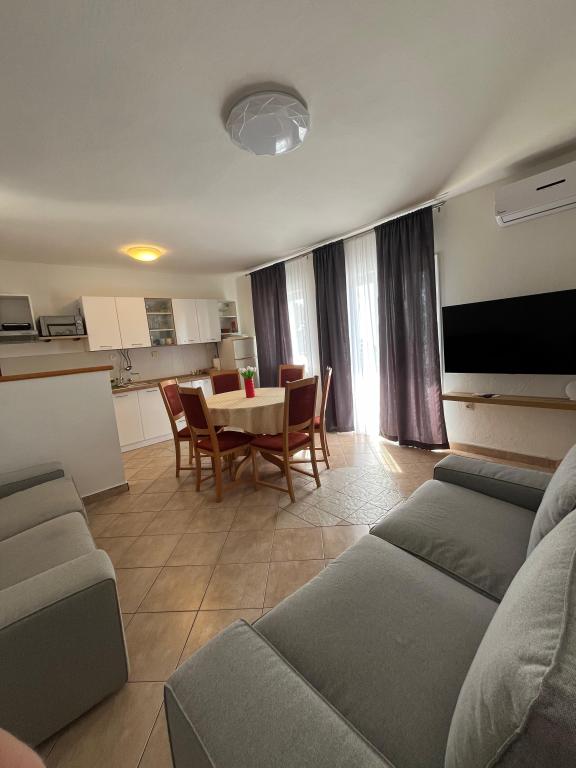 Zapraszamy do naszych komfortowych i przestronnych apartamentów położonych w cichym i przyjemnym miasteczku Sveti Juraj, niedaleko Senja. Nasze apartamenty oferują spokojny pobyt w pobliżu pięknego Morza Adriatyckiego. Odległość do plaży i centrum miasta wynosi 150 metrów. Każdy apartament może pomieścić maksymalnie 7 osób. Każdy apartament posiada 3 sypialnie z łazienkami, salon oraz w pełni wyposażoną kuchnię. Apartamenty są klimatyzowane. Ponieważ będziesz spędzać dużo czasu na świeżym powietrzu, nasz dom oferuje dużą przestrzeń do relaksu z odpowiednimi meblami ogrodowymi. Jeśli chcesz przygotować relaksującą kolację na świeżym powietrzu, do dyspozycji jest także miejsce ze sprzętem do grillowania. Na podwórzu znajduje się duży prywatny parking, a Twoje samochody są bezpieczne. Nasze apartamenty są idealne na spokojne rodzinne wakacje z dziećmi lub grupą przyjaciół.