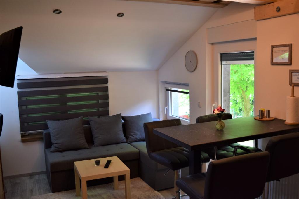Apartamenty Katruža znajdują się w gminie Sveti Martin na Mura w miejscowości Jurovec. Dom, urządzony w stylu rustykalnym, oferuje 2 apartamenty, każdy z osobnym wejściem i oddzielnym tarasem. Jesteśmy daleko od dróg, więc jeśli przyjeżdżasz z dziećmi, nie musisz martwić się o korki. Na podwórku mamy również piaskownicę do zabawy dla dzieci. Jesteśmy 5 km od uzdrowiska Sveti Martin i 20 km od miasta Čakovec. Apartament 1 obejmuje 1 sypialnię, 1 łazienkę, pościel, ręczniki, telewizor z płaskim ekranem, bezpłatny dostęp do Internetu, kącik do pracy, jadalnię, w pełni wyposażoną kuchnię i wybrukowany taras z widokiem na dziedziniec. Apartament 2 składa się z 2 sypialni, jednej z dużym łóżkiem małżeńskim 180x200 i drugiej z dwoma łóżkami 90x200, które w razie potrzeby można połączyć. Mieszkanie posiada kuchnię połączoną z salonem, duży taras, miejsce do pracy oraz łazienkę. Mamy parking na kilka samochodów na podwórku. Dostępny jest również duży ceglany kominek.