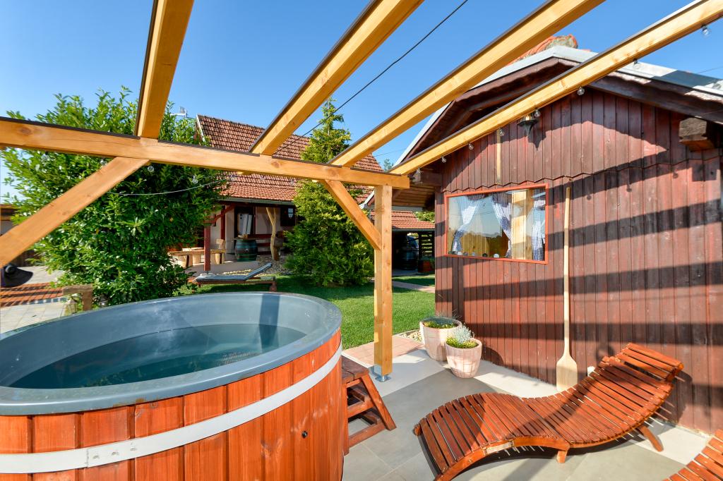 Idealne wakacje od codzienności Dom wakacyjny Holiday Home Dika w Kapelščak składa się z dwóch domów, jeden obok drugiego. W czterech sypialniach, z trzema dużymi podwójnymi łóżkami i dwoma oddzielnymi łóżkami, możemy pomieścić do ośmiu osób. Dwie kuchnie wewnątrz i jedna na zewnątrz umożliwiają przygotowanie wyśmienitych potraw. Oferujemy duży grill na świeżym powietrzu na przestronnym tarasie gotowym na rodzinne spotkania. Pobyt w domu dopełnia sauna, a na uroczo urządzonym podwórku znajduje się basen jacuzzi z podgrzewaną wodą. Do dyspozycji Gości jest również basen bez krawędzi ze wspaniałym widokiem na przyrodę. Latem można biesiadować przy zewnętrznym kominku, a zimą ogrzać się paląc w piecu potasowym lub po prostu przekręcić termostat i włączyć ogrzewanie. W piwnicy domu znajdziesz butelki starannie wyselekcjonowanych win od winiarzy Međimurje, z możliwością degustacji boskiej kropli naszego klimatu. Obok domu znajduje się podwórko, sad i las. Przyjemny spacer przez piękną przyrodę górnego Međimurja doprowadzi Cię do LifeClass Terme Sveti Martin w 25 minut.