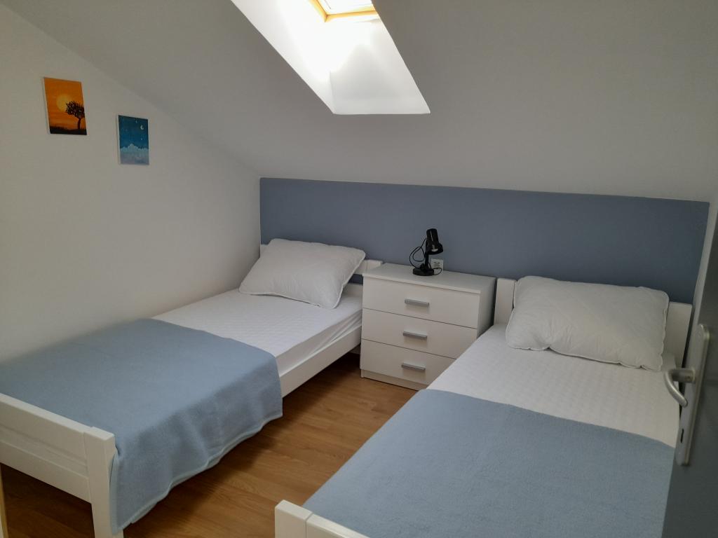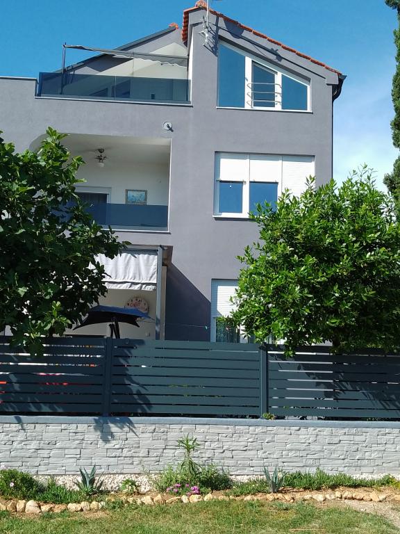 Wynajmę dwa nowocześnie urządzone iw pełni wyposażone, klimatyzowane apartamenty z pięknym widokiem na morze, które oddalone jest zaledwie o 60 m. Przył. 1 (4****) znajduje się na pierwszym piętrze, posiada dwie sypialnie, łazienkę z pralką, kuchnię wyposażoną we wszelki sprzęt AGD (zmywarka, mikrofalówka, toster...), pokój dzienny z wyciąganą łóżko i taras z pięknym widokiem na wyspę Pašman. App 2 znajduje się na poddaszu, posiada dwie sypialnie, kuchnię z salonem, łazienkę i taras z widokiem na morze. Jest wyposażony dokładnie tak samo jak App 1. Parking dla samochodów znajduje się na podwórzu lub przed podwórzem.