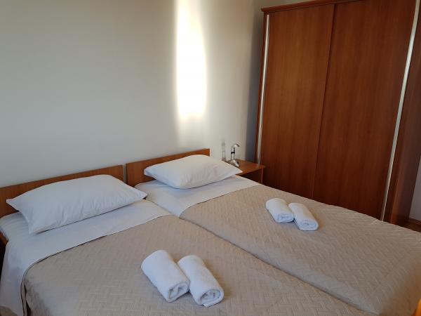 Zatrzymaliśmy się tutaj pod koniec 6. miesiąca! Zostaliśmy przywitani przez bardzo czysty i schludny apartament, zakwaterowanie pasuje do zdjęć! Biorąc pod uwagę, że w pierwszym rzędzie do morza cena jest bardzo rozsądna! Plaża znajduje się zaledwie kilka metrów od apartamentu, co jest świetne, jeśli jesteś z dziećmi! To miejsce jest bardzo ciche i właśnie dlatego nam się podobało! Gospodarze są mili i gościnni i mamy nadzieję, że będziemy mogli przyjechać jeszcze kilka razy! Mamy dobrą pamięć!
