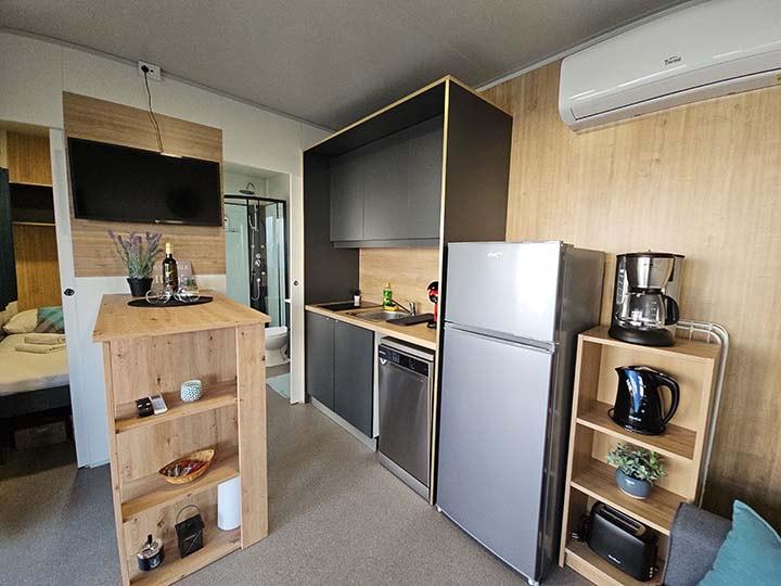 Przeżyj idealne wakacje na plaży w domku mobilnym Lilly! Szukasz rodzinnych wakacji nad morzem? Nie szukaj dalej! Nasz nowoczesny domek mobilny Lilly, położony na kempingu Tamaris w miejscowości Sveti Petar na Moru w Chorwacji, znajduje się zaledwie 40 metrów od pięknej plaży, idealnej dla dzieci. Otoczony spokojem i widokiem na morze, dom jest w pełni wyposażony, aby pomieścić 4+1 osoby. Niezależnie od tego, czy szukasz spokoju wioski rybackiej, czy też emocji i przygód, nasz komfortowy dom oferuje idealny wypoczynek.