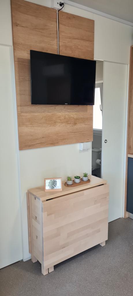 Bardzo ładny dom mobilny w cichym obozie, blisko morza, gdzie nie ma tłumów. Dom posiada bardzo duży taras z kuchnią na świeżym powietrzu. Doskonały wybór. Polecam.