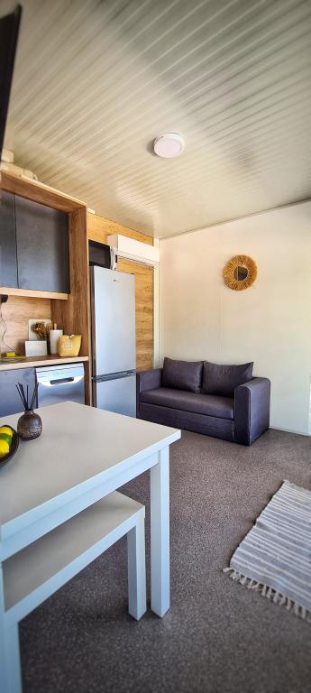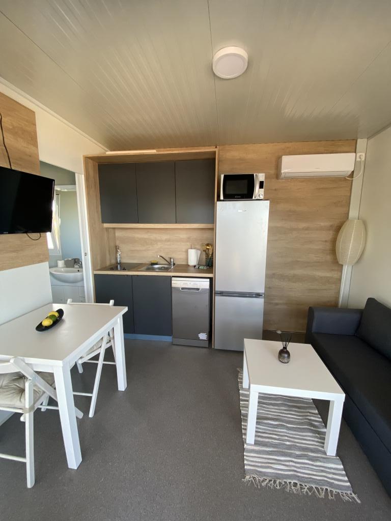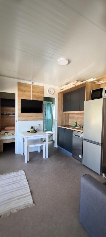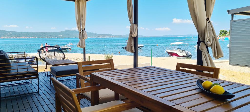 W pełni i nowocześnie wyposażony mobile home przy cichej plaży w Sveti Petar na Moru. Ciesz się luksusem lokalizacji, która nie może być bliżej pięknej plaży. 2 sypialnie, kuchnia, taras do wypoczynku i parking obok domu. Lokalizacja: Camp ToRo, Jadranska Magistrala 421, Sveti Petar na Moru.