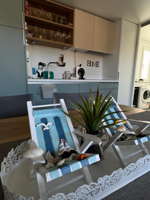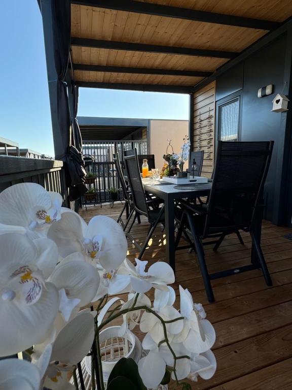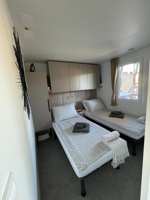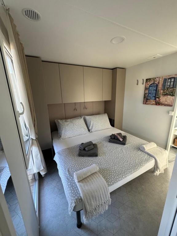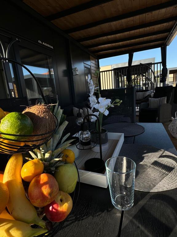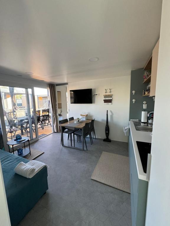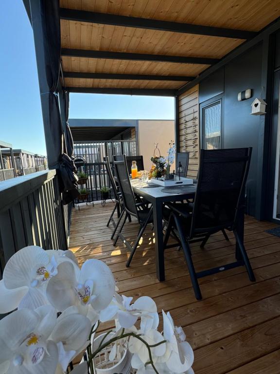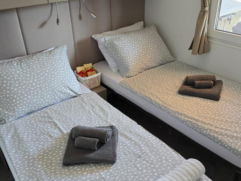 Domek mobilny położony na cichym kempingu, zaledwie 40 metrów od plaży, duży taras z grillem gazowym i wentylatorami sufitowymi, a także dodatkowe udogodnienia wypoczynkowe, huśtawka i fotele. Dom wyposażony jest we wszystkie dodatkowe sprzęty i naczynia, których potrzebujesz, aby móc cieszyć się wakacjami jak w domu. Na terenie obozu obowiązuje zakaz wjazdu pojazdów, tak aby dzieci mogły się beztrosko bawić, podczas gdy rodzice odpoczywają.