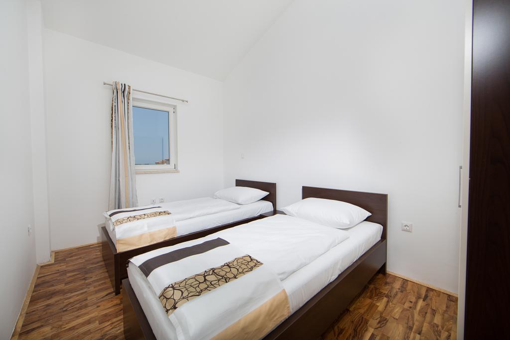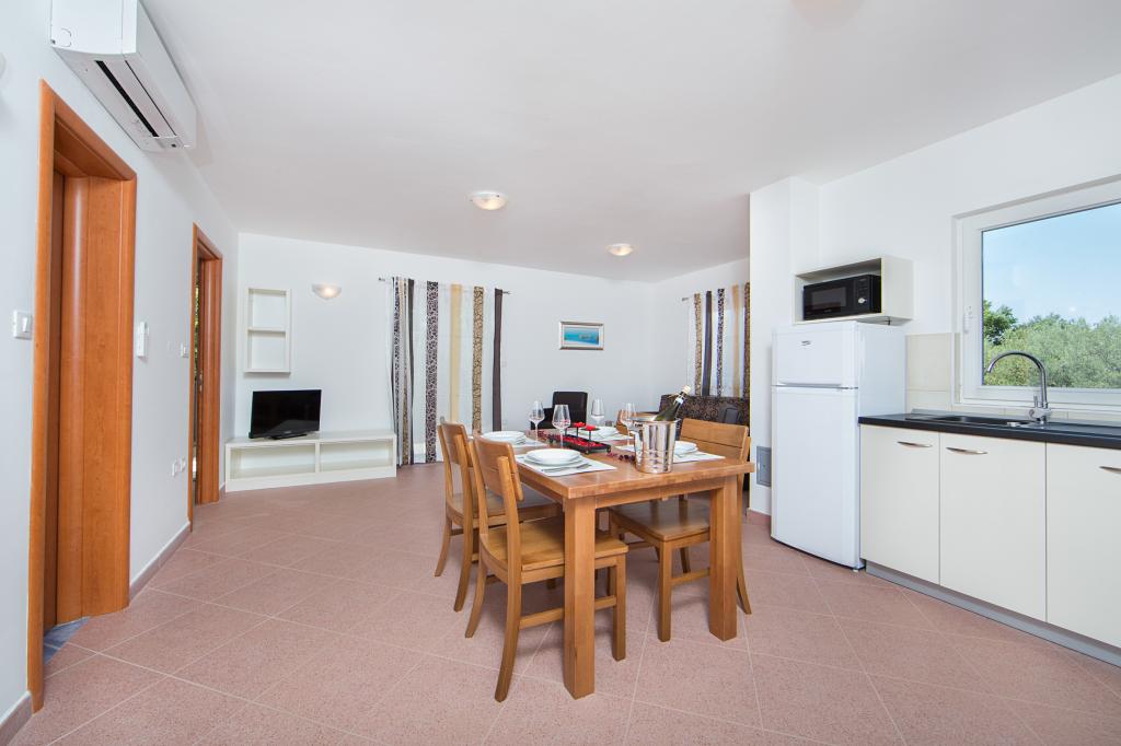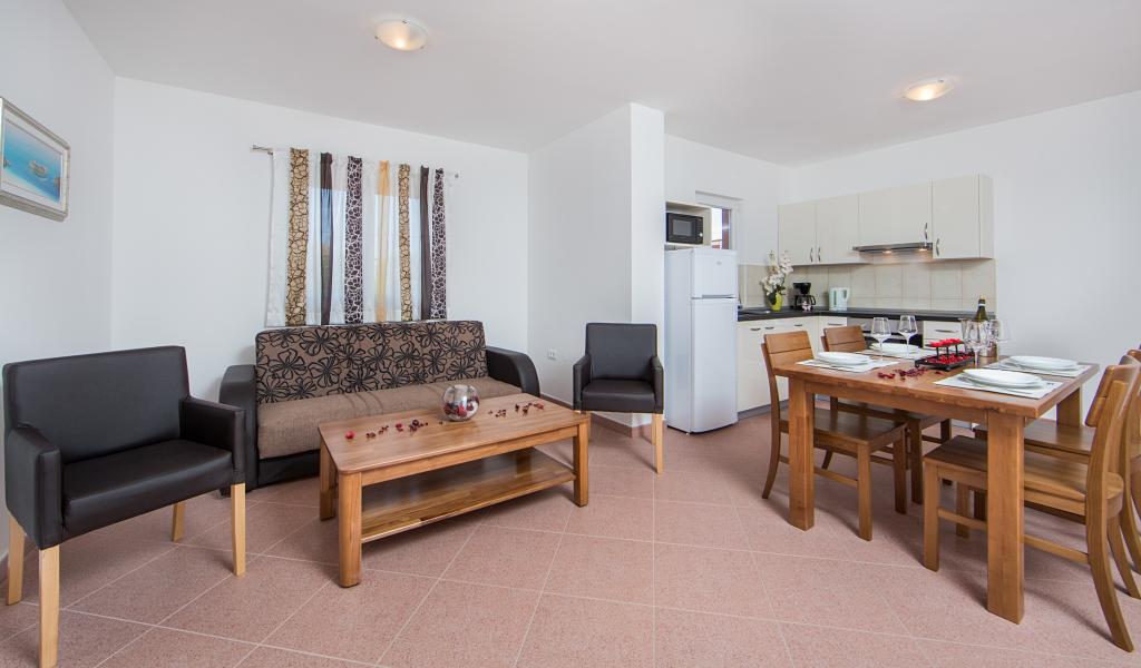 Residence Jana znajduje się w Vabriga Tar, spokojnej okolicy, w odległości krótkiego spaceru od plaży. Residence Jana dysponuje 20 apartamentami z trzema sypialniami, a także oferuje basen i brodzik dla dzieci otoczony dużym tarasem i leżakami. Obok basenów znajduje się również teren zielony do zabawy dla naszych pociech. Mieszkanie o łącznej powierzchni 62m2, 3 gwiazdki, dla 4+2 osób. Na parterze znajduje się kuchnia i jadalnia, rozkładana sofa, klimatyzacja i toaleta. Na piętrze znajdują się 2 sypialnie, jedna z podwójnym łóżkiem, druga z dwoma pojedynczymi łóżkami, łazienka, toaleta, klimatyzacja. W aplikacji znajdziesz zmywarkę, zamrażarkę, czajnik, ekspres przelewowy, mikrofalówkę. Również każdy apartament posiada zadaszony taras ze stołem i krzesłami. Przed każdym apartamentem znajduje się miejsce parkingowe. Zwierzęta są akceptowane, ale za dodatkową opłatą. Nie wolno przebywać na terenie basenu.Cena obejmuje bezpłatne WiFi, telewizję satelitarną, pościel, ręczniki i sprzątanie końcowe
