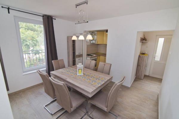 Apartament w małym rodzinnym domu, który znajduje się nad morzem, 5 minut spacerem od głównej plaży w mjestu.Također można pływać przed tym apartamencie znajduje się w spokojnej części miasta, idealny na rodzinne wakacje. Jest w pełni wyposażone, z naprawdę dużym tarasem (20m2), częściowo zadaszonym. Mieszkanie ma osobne wejście i parking w podwórzu może być używany i roštilj.Apartman jest klimatyzowany i został zabezpieczony Wi-Fi Składa się z dużej sypialni z podwójnym łóżkiem, pokoju dziennego z rozkładaną sofą dla dwóch osób dorosłych, łazienka i kuhinje.Također możliwe jest, aby upewnić się łukiem z przodu. Centrum znajduje się w odległości około 15 minut spacerem.