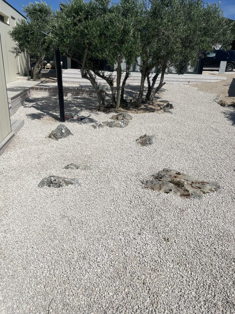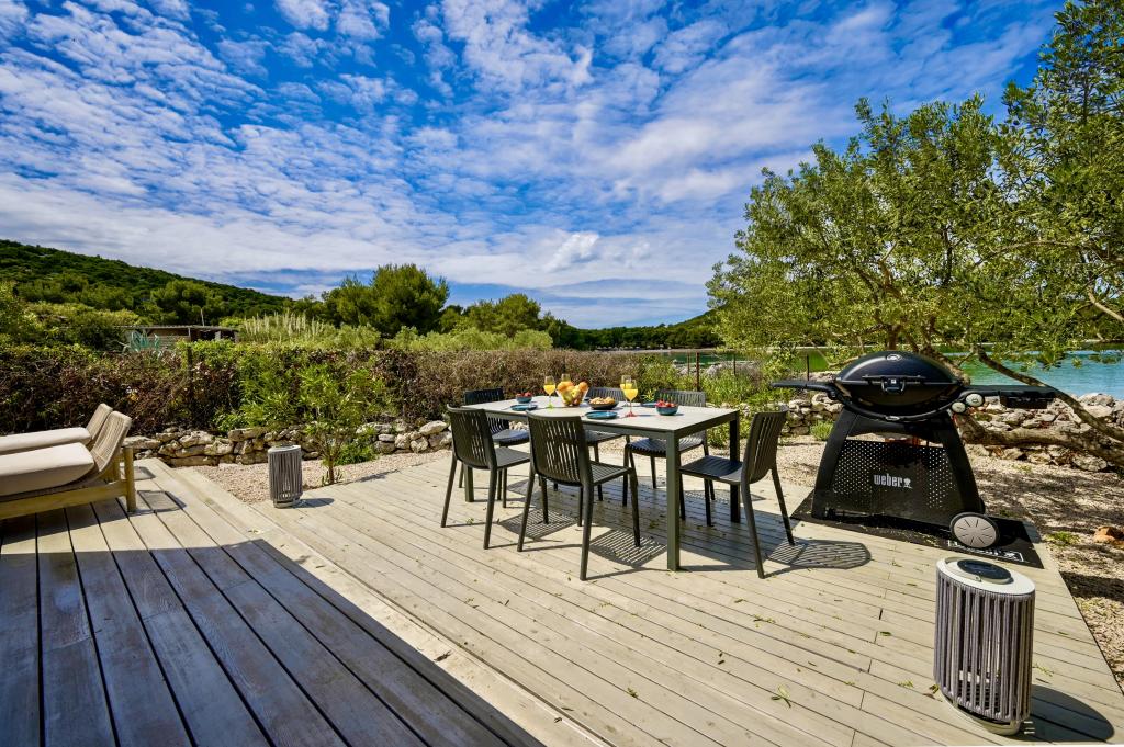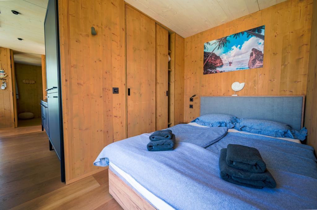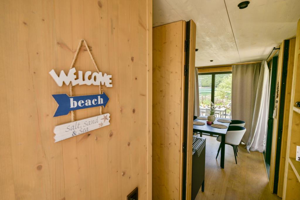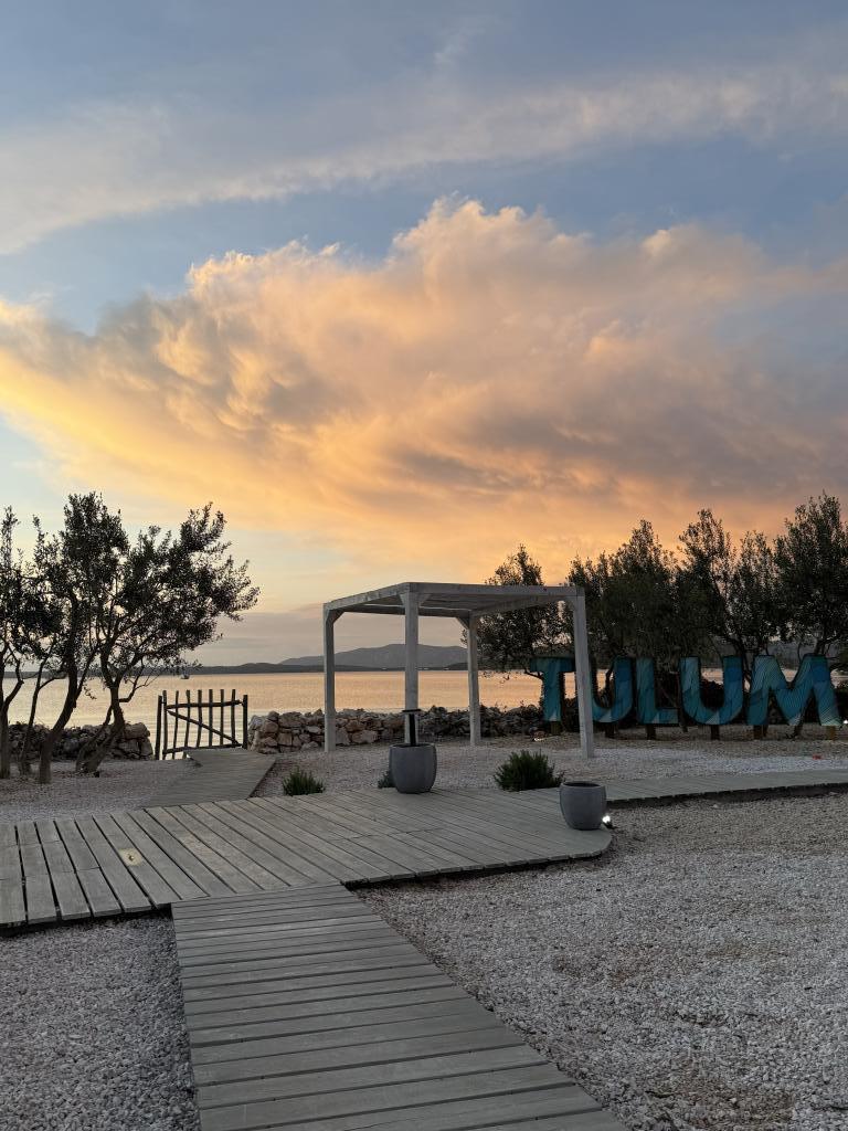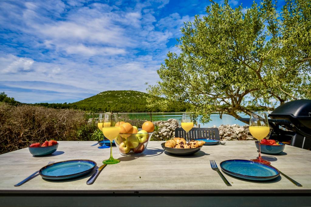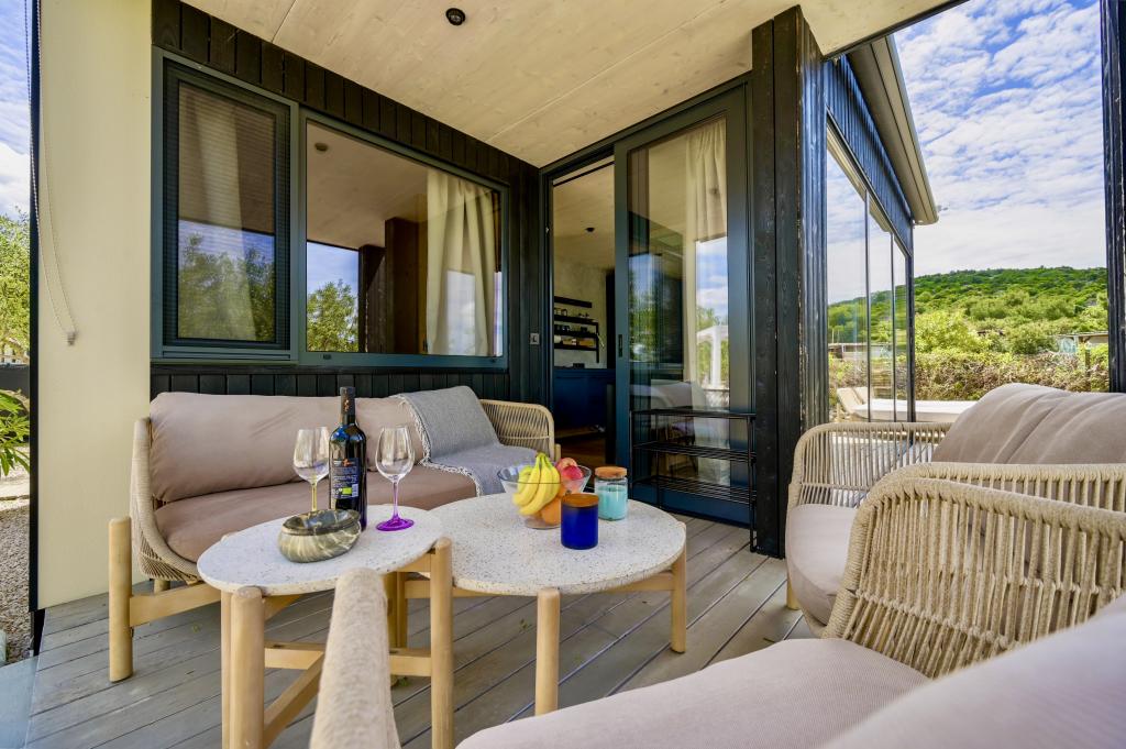 Dom mobilny znajduje się zaledwie kilka kroków od morza. Nowoczesne wnętrze apartamentu nawiązuje do typowej Dalmacji. Wokół znajdują się białe kamyki i zielone drzewa oliwne, a przed nami rozciąga się bezkresny błękit. Morze, słońce i wiatr tworzą nieopisaną grę, która zachwyca wszystkie zmysły. Niezależnie od tego, czy śpisz w jednej z dwóch sypialni, możesz cieszyć się błękitem morza i blaskiem porannego słońca. A z w pełni wyposażonej kuchni ze wszystkim, czego potrzebujesz (w tym zmywarką i zamrażarką) oraz przestronnego stołu jadalnego roztacza się niesamowity widok na taras i wszystkie uroki, jakie oferują słońce i morze. Niezależnie od tego, czy przygotowujesz posiłek w kuchni, czy grillujesz na tarasie, masz gwarancję pełnego spokoju i prywatności. Celem każdych wakacji jest pozostawienie za sobą codzienności i rutyny, a właśnie to oferuje nasz ośrodek. Mimo że wokół Ciebie znajduje się 8 podobnych budynków, możesz cieszyć się całkowitą prywatnością i spokojem, ponieważ wszyscy będą Cię wspierać. Jedynym ograniczeniem jest niebo i morze.