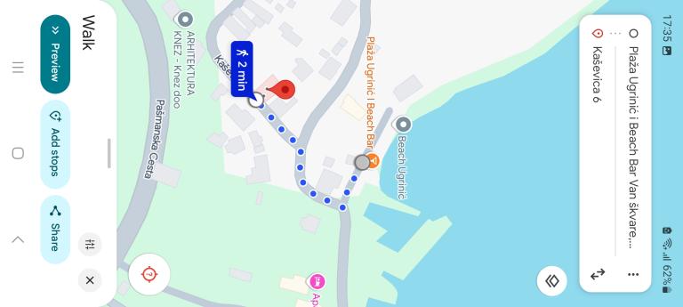 W pełni wyposażone apartamenty w spokojnej i malowniczej miejscowości Ugrinići, zaledwie 100 m od plaży. Idealne na wakacje bez tłumów i hałasu. W wiosce jest tylko kawiarnia. Pozostałe udogodnienia znajdują się około 2 km od portu promowego Tkon.