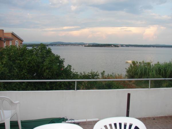 Dom w spokojnej części miejscowości Tkon na wyspie Pašman. Do miasta można dopłynąć promem, który w razie potrzeby kursuje co godzinę, a nawet dłużej z Biogradu. Dom, w którym znajdują się apartamenty, znajduje się w pierwszym rzędzie od morza, 10 metrów od apartamentu o powierzchni 130 m². Do centrum można dojść pieszo w 10 minut. Przed domem znajduje się duży parking. Apartament jest wyposażony we wszystko, co niezbędne do przygotowania posiłków i napojów, Wi-Fi, klimatyzację, telewizor, prysznic na świeżym powietrzu i grill. W apartamencie znajdują się trzy sypialnie, pokój dziecięcy, łazienka i toaleta, a także druga toaleta, duży taras z widokiem na morze, kuchnia i duży salon. Zadaszony taras, idealny do opalania i spotkań towarzyskich, połączony jest z kuchnią, z widokiem na morze i okolicę. Apartamenty są przeznaczone wyłącznie do wynajęcia, można wynająć cały dom, idealny dla rodziny.