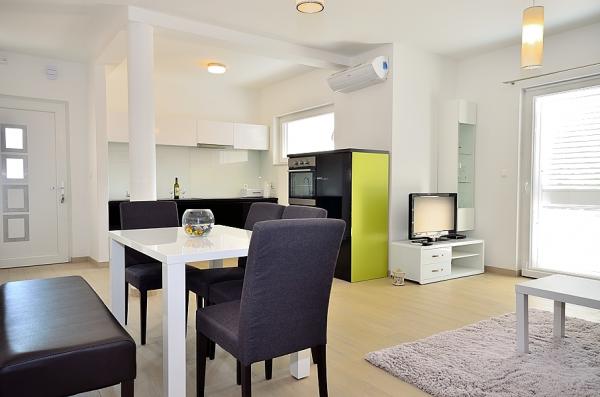 Tribunj- apartament z dwoma sypialniami łóżka, toalety, łazienka wc, kuchnia i pokój dzienny, taras, parking, klimatyzacja, 300 metrów od plaży, 200 m od centrum, 100 m do sklepów i restauracji ,