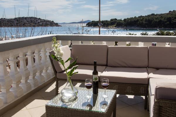 Piękny dom, w którym apartament, urządzony z dużą ilością miłości i urządzone z wielką dbałością o szczegóły, tak, że sprawia, że czujesz się zrelaksowany i komfort podczas pobytu. Dom położony jest w samym sercu małej wioski rybackiej Tribunj, w pierwszym rzędzie. Zaledwie kilka kroków od plaży, restauracji, kawiarni, sklepów i wszystkiego innego, co pozwoli łatwiej wakacji i bardziej wszechstronne. Mieszkanie ma powierzchnię 70 m² i jest zaprojektowane tak, aby pomieścić do 6 osób. Na parterze znajduje się przestronny salon, który jest oddzielony od baru kuchennym stole, i łazienka, a na piętrze są dwie sypialnie. Wszystkie pokoje oferują wspaniałe widoki na morze, a także dwa duże tarasy, które czynią to mieszkanie wyjątkowym.