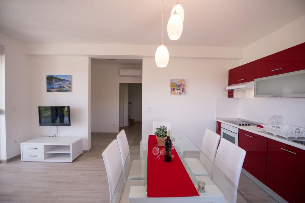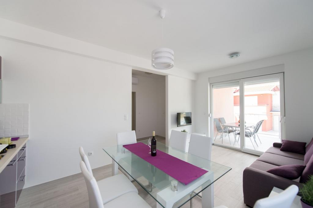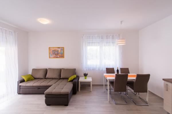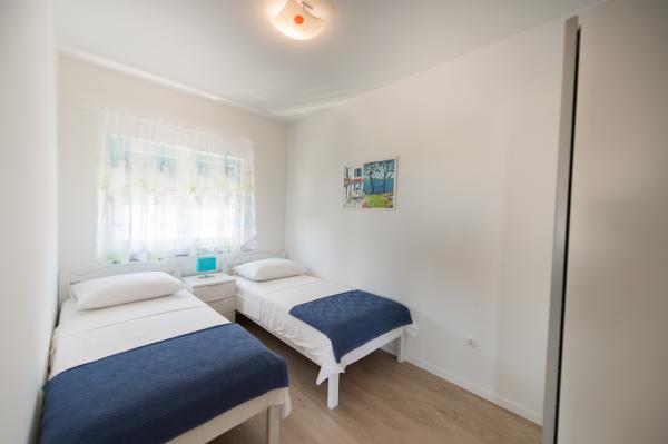 Nasze apartamenty (trzy apartamenty, z których dwa są dwukondygnacyjny), oferują zakwaterowanie w nowo wybudowanym domu, w spokojnej części miejscowości Tribunj, otoczony drzewami oliwnymi, zieleni i pięknie zaprojektowanym ogrodem. W pełni klimatyzowane (wszystkie pokoje i salon) zawiera nowoczesną, w pełni wyposażoną kuchnię (piekarnik, zmywarka do naczyń, czajnik elektryczny, ekspres do kawy, mikser ...), ochrona przed komarami (moskitiery), pralki, darmowe WI-FI , telewizję satelitarną oraz przestronny taras oferuje piękny widok na morze, ogród i okolicę. Bezpłatne miejsca parkingowe są zapewnione, ogrodzony i znajduje się w obrębie obiektu, a do Państwa dyspozycji jest grill w ogrodzie. Apartamenty znajdują się 500 m od kawiarni, restauracji i słynnej plaży Tribunj Zamalin, odpowiednia dla dzieci. Od słynnych atrakcji turystycznych w okolicy, zalecamy: - Park Narodowy Krka, 25 km od hotelu, - Park Narodowy Kornati (z odstępstw od Tribunj) - miasta Sibenik, Split, Trogir i Zadar