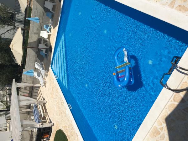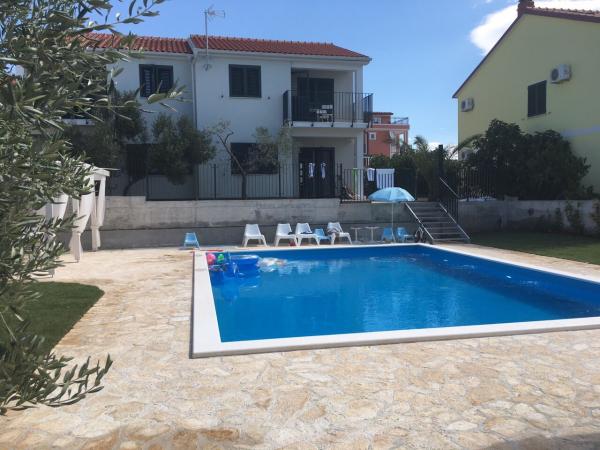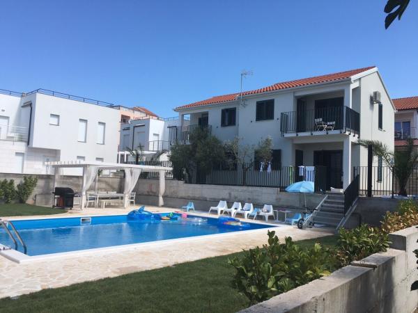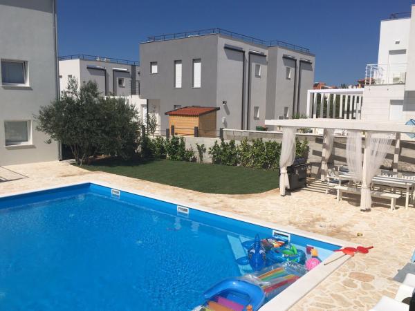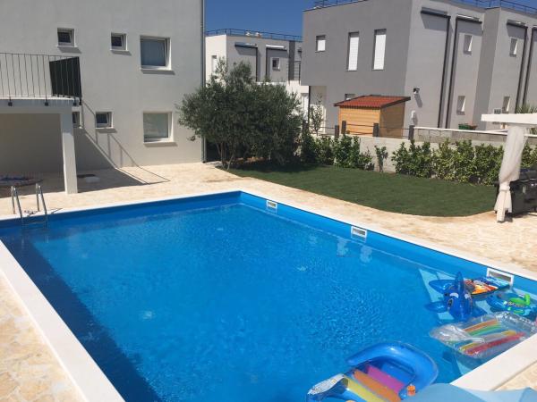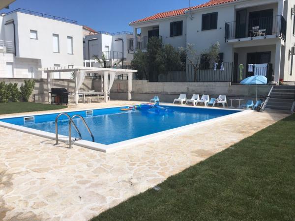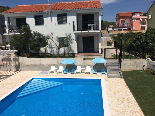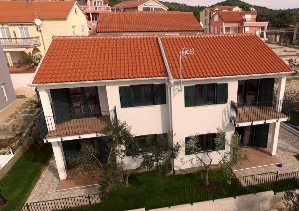 W pełni wyposażone i nowoczesne apartamenty w nowych spokojnej części Tribunj, w pobliżu miasta, idealne do beztroskiego wypoczynku. Apartamenty są idealne dla dwóch osób, ale może pomieścić do czterech osób. Apartamenty są w pełni wyposażone we wszystko, czego potrzeba do beztroskiego wypoczynku - z kuchnią, łazienka, pralka, zmywarka, pościel, ręczniki i na zewnątrz wspólny obszar z basenem, leżakami, grill i ogród kuchni. Ze względu na podział jednostek (dwie oddzielne jednostki, każdy z dwóch mieszkań w każdym), nadaje się dla rodzin lub społeczeństwa 8 członków, którzy mogą zatrzymać się w tym samym pomieszczeniu z tym samym wejściem w dwóch oddzielnych mieszkań. Istnieje możliwość wynajęcia całego domu, który może gościć 16 osób. Apartamenty znajdują się zaledwie kilka minut spacerem od centrum Garade w którym rynek, sklepy, apteka, ośrodek zdrowia, kawiarnie, restauracje, park i marina i 7 minut spacerem od pięknej plaży w Tribunj. Obszar Tribunja jest niepowtarzalny ze względu na lokalizację, gdyż znajduje się w pobliżu miasta, Szybenik,