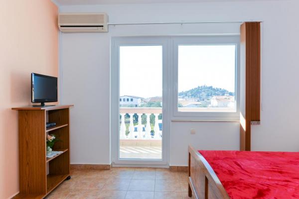 Komfortowe pokoje w budynku z basenem i odkrytym tarasem.