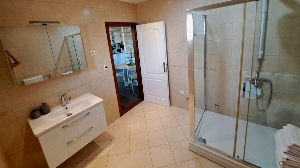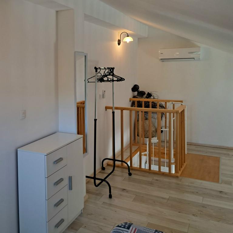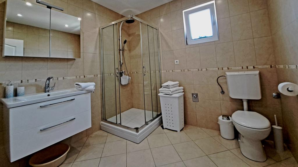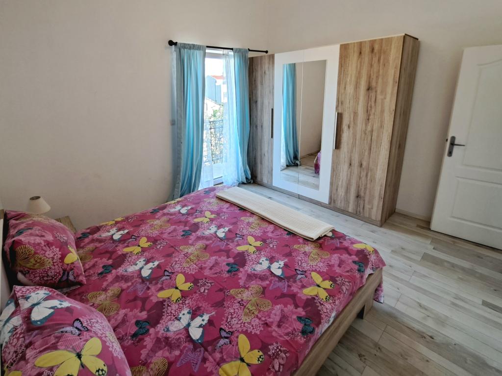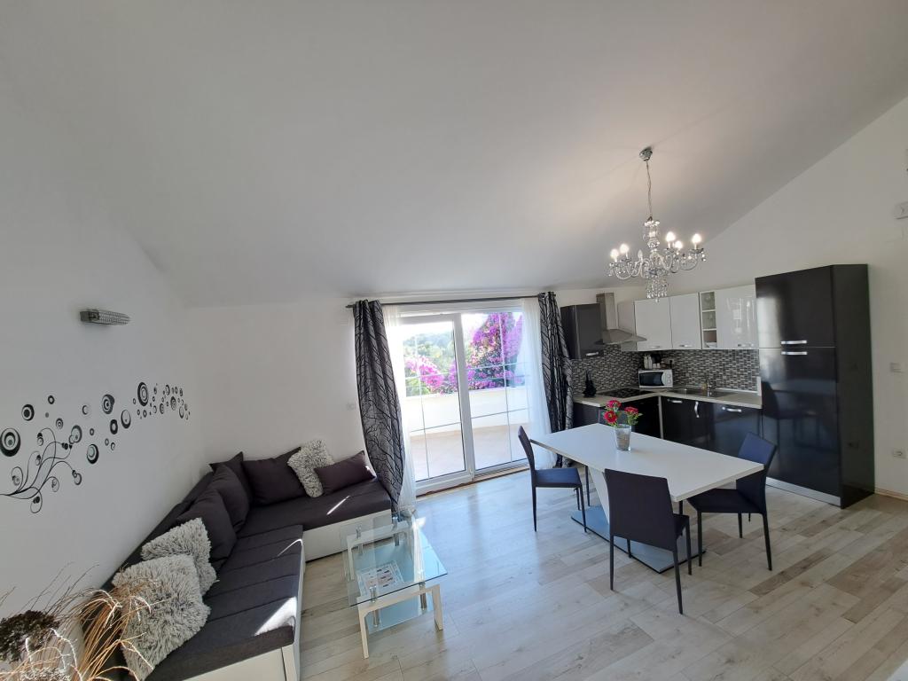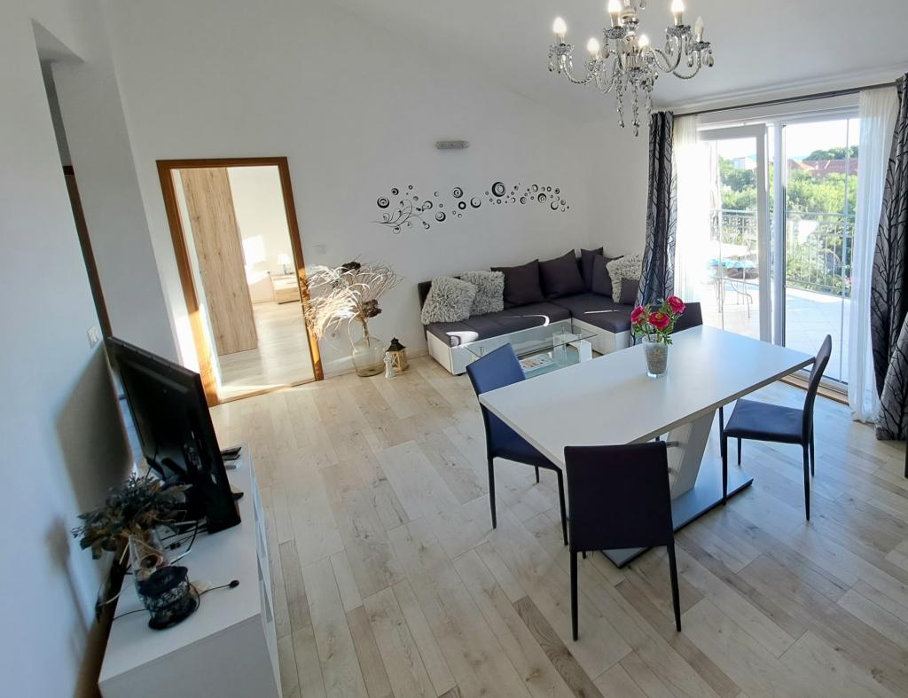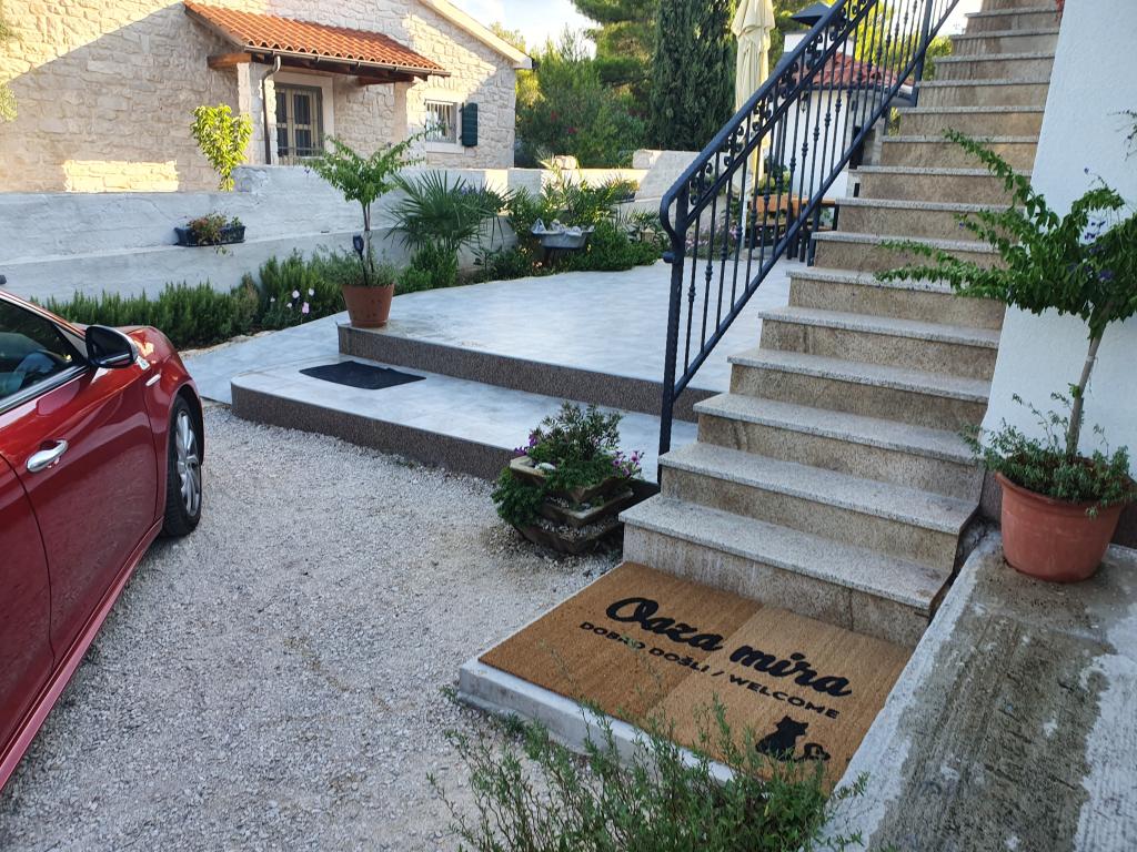 Apartamenty „OAZA MIRA” znajdują się w prywatnym, rodzinnym domu, składającym się z 3 apartamentów, mogących pomieścić od 4 do 18 osób. Otoczone zielenią i kwiatami, to ukojenie dla oczu i uszu. Tutaj ukołyszą Cię i obudzą ptaki. Oferowane przez nas apartamenty mają powierzchnię 65 m², dwa z nich są dwupoziomowe (z antresolami) z sypialnią o powierzchni około 20 m². Wszystkie apartamenty posiadają dwie sypialnie, jadalnię, w pełni wyposażoną kuchnię, w której znajdziesz wszystko, czego potrzebujesz (mikrofalówkę, toster, piekarnik, ekspres do kawy, pralkę) oraz duże łazienki. Apartamenty są przestronne i klimatyzowane. Bezpłatny internet (Wi-Fi) i telewizja satelitarna. Wszystkie apartamenty posiadają taras lub balkon z widokiem na morze, ogród i wzgórza. Bezpłatny parking prywatny jest dostępny na terenie budynku i nie wymaga rezerwacji.