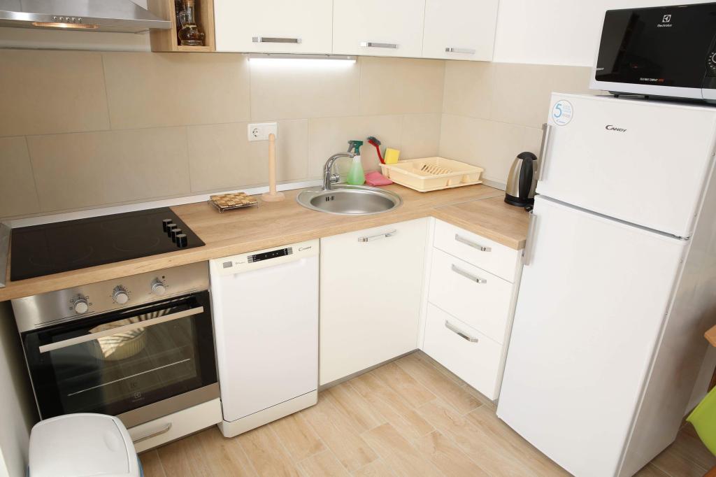 4 całkowicie odnowione apartamenty do wynajęcia w Tribunj, 5 km od Vodic i 12 km od Szybenika. Apartamenty zlokalizowane są w atrakcyjnej lokalizacji zaledwie 150 m od głównej plaży miejskiej. W bezpośrednim sąsiedztwie apartamentu znajdują się restauracje, kawiarnie, sklepy oraz apteka. 3 apartamenty (2+2) składają się z sypialni z dużym podwójnym łóżkiem, kuchni, salonu z rozkładaną sofą (jakościowa sofa z materacem), łazienki i balkonu z widokiem na morze. Apartament typu studio przeznaczony jest dla dwóch osób. Posiada kuchnię, podwójne łóżko, łazienkę i balkon z widokiem na morze. Wszystkie apartamenty są klimatyzowane, posiadają suszarkę do włosów, smart TV oraz bezpłatny bezprzewodowy dostęp do Internetu. Parking strzeżony przed apartamentem.