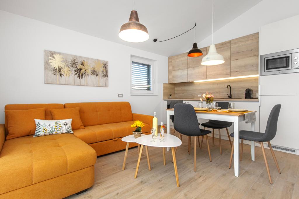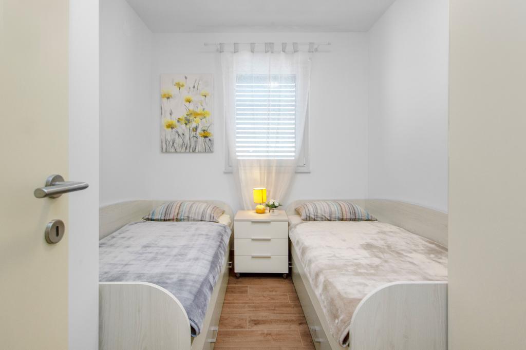 Obiekt Trzy Oliwki to nowy obiekt, który po raz pierwszy otworzy swoje podwoje dla gości już od lata 2024 roku. Na dziedzińcu budynku rosną trzy stare drzewa oliwne, drewno tak typowe dla chorwackiego wybrzeża i wysp, z którego owoców uzyskuje się najwyższej jakości oliwę, często nazywaną „płynnym złotem”. Nazwa Three Olives sugeruje środowisko ciszy, spokoju i obfitości. Apartamenty w budynku są wyjątkowe, nowoczesne i w pełni funkcjonalnie wyposażone, abyś czuł się komfortowo, jak we własnym domu! Obiekt jest doskonale położony; położony jest 150 m od morza i 200 m od centrum miasta. W bezpośrednim sąsiedztwie nie ma głównych dróg ani obiektów biznesowych, dzięki czemu goście mają pewność spokoju zarówno w dzień, jak i w nocy. Krótko mówiąc, wszystko jest gotowe na pełne wakacje.
