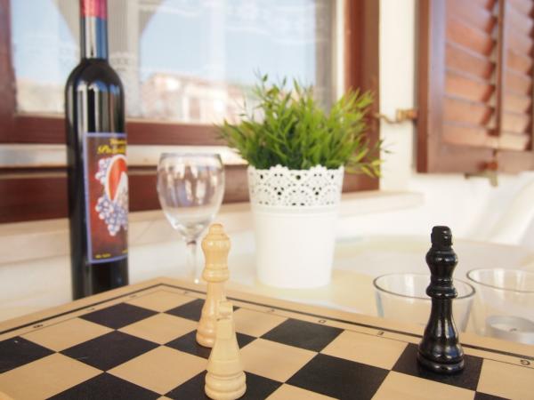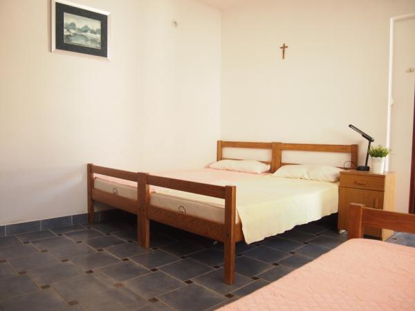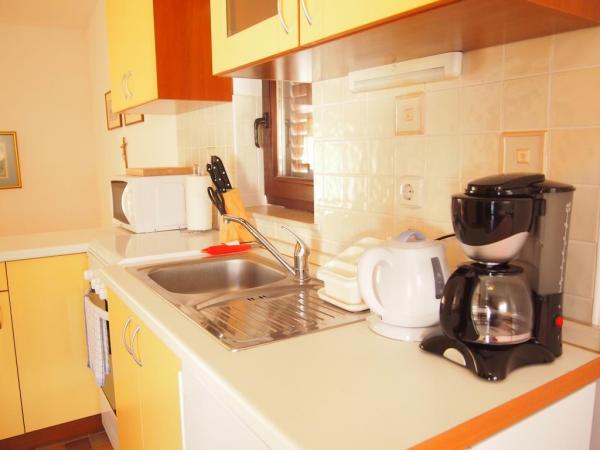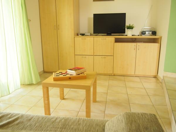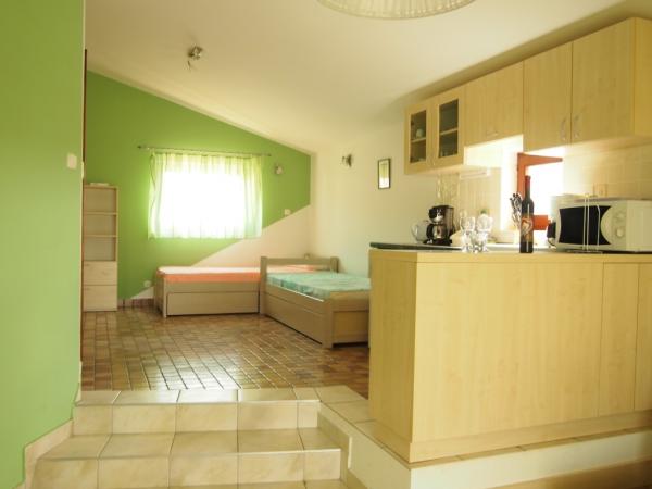 Nasze apartamenty znajdują się w rodzinnym domu wybudowanym w 2006 roku znajduje się w cichej ulicy w pobliżu centrum Vodice (około 300m). Wszystkie apartamenty są nowocześnie umeblowane i wyposażone w niezbędny sprzęt. Oferujemy trzy apartamenty, z których dwa znajdują się na pierwszym piętrze z pięknym widokiem na morze i jeden znajduje się na parterze i jest idealny dla rodzin z małymi dziećmi, którzy chcą korzystać stoczni. Każdy apartament posiada miejsce parkingowe w podwórzu, a Goście mogą korzystać z grilla znajdującego się w ogrodzie i huśtawki dla dzieci. Wszystkie apartamenty posiadają: - Nieograniczony "bezprzewodowy" internet - Klimatyzacja - Korzystanie z pralki - Zadaszony taras ze stołem i krzesłami - Parking na Dziedziniec - Opłata klimatyczna wliczone w cenę.