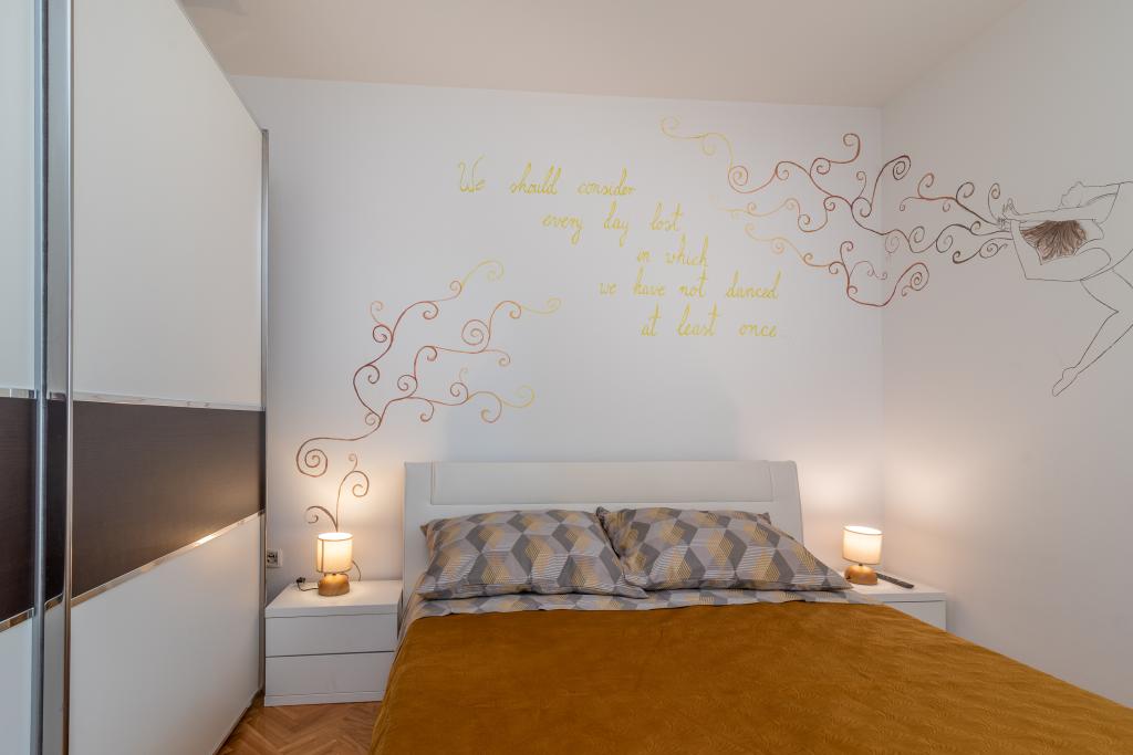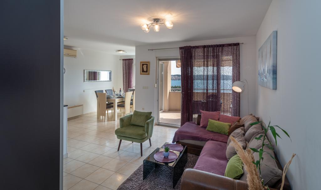 Nowo wyremontowany apartament Anđela dla 5 osób znajduje się w zatoce Saldun na wyspie Čiovo, połączony dwoma mostami. Mieszkanie składa się z 2 sypialni, dwóch łazienek, kuchni, salonu i balkonu z pięknym widokiem na morze. To jest 900 m lub 10 minut spacerem od centrum Starego Miasta w Trogirze, które jest chronione przez UNESCO, 7 km od lotniska w Splicie i 1,5 km od dworca autobusowego w Trogirze.