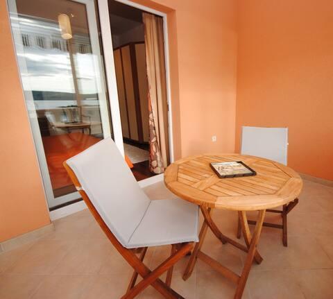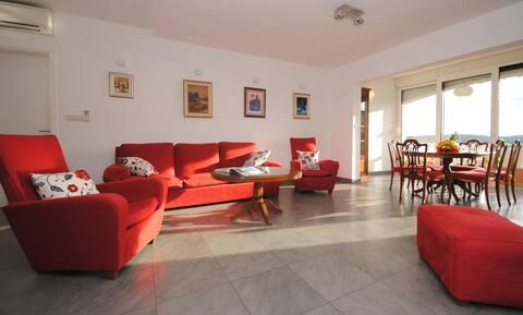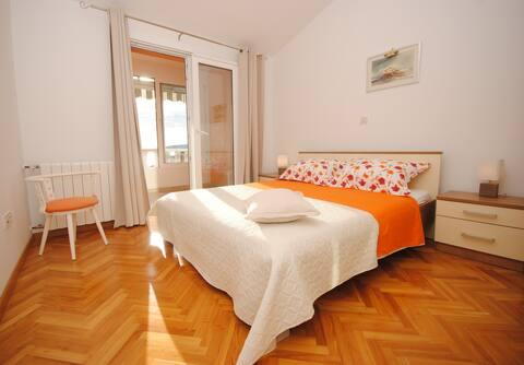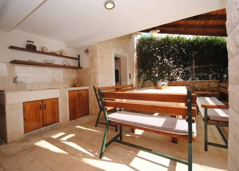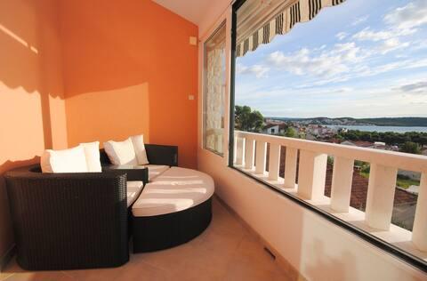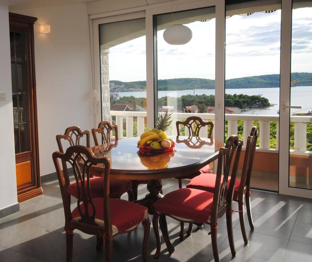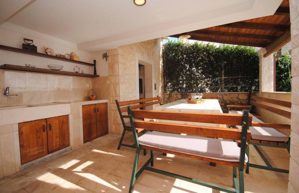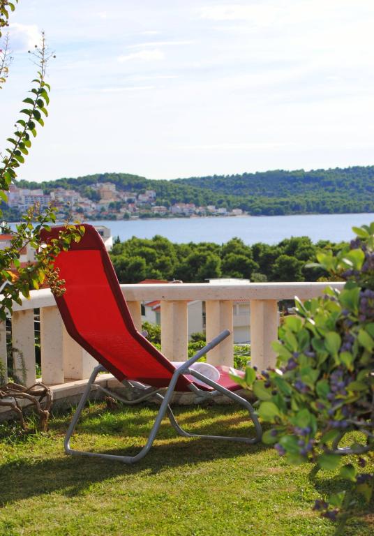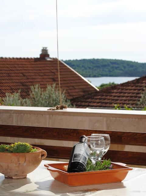 Luksusowy apartament z tarasem „Lucy” i widokiem na morze znajduje się na wyspie Čiovo w spokojnej okolicy, zaledwie 10 minut od zabytkowej starówki Trogiru. Mieszkanie znajduje się na 1 piętrze domu rodzinnego. Ten trzypokojowy apartament z pięknym widokiem na morze jest umeblowany zgodnie z najwyższymi standardami i wyposażony we wszystko, co niezbędne do przyjemnego pobytu. Salon: Przestronny salon wyposażony jest w Smart TV, bezprzewodowy dostęp do Internetu, wygodne sofy i fotele oraz duży piękny taras. Sypialnie: Schody prowadzą do 3 luksusowych sypialni (Sypialnia Słoneczna (z łazienką i tarasem), Sypialnia Morska i Sypialnia Piaskowa (z tarasem i wspólną łazienką)). Każdy pokój wyposażony jest w klimatyzację, szafki nocne, szafę z pościelą i ręcznikami oraz łóżko małżeńskie (1,60×2). Za domem znajduje się piękna letnia kuchnia w stylu vintage (z miejscem do grillowania) wyposażona we wszystko, czego potrzebujesz, aby cieszyć się śródziemnomorskim stylem.