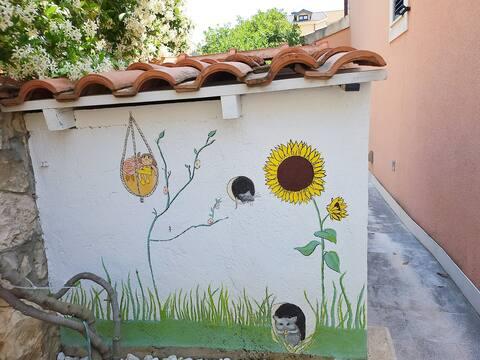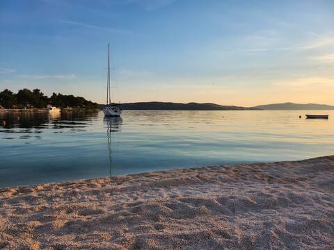 Dla naszych najmłodszych gości obok letniej kuchni przygotowaliśmy kącik zabaw, który wyposażony jest w domek do zabawy, stół, puzzle i zabawki. Jeśli nasi goście chcą w pełni cieszyć się wakacjami, do dyspozycji jest SUP (Stand Up Paddle). To nic nie kosztuje. W bezpośrednim sąsiedztwie apartamentu znajdziesz liczne kawiarnie, restauracje i sklepy - wszystko, czego potrzebujesz podczas pobytu. Najbliższy sklep znajduje się zaledwie 2 minuty od hotelu, podobnie jak restauracja „Mediteraneo”. Lokalna plaża oddalona jest od obiektu o 2 minuty spacerem. W drodze powrotnej do apartamentu pamiętaj, że do apartamentu prowadzi niewielka górka. Jeśli potrzebujesz wskazówek, gdzie zjeść lub gdzie się udać, możesz skontaktować się z gospodynią Lucią, która mieszka na parterze i. chętnie pomoże Ci we wszystkim, czego potrzebujesz. Jeśli zatrzymasz się u nas na tydzień lub dłużej, otrzymasz bezpłatną wycieczkę po starym mieście Trogir z Łucją, która jest również licencjonowanym przewodnikiem turystycznym.