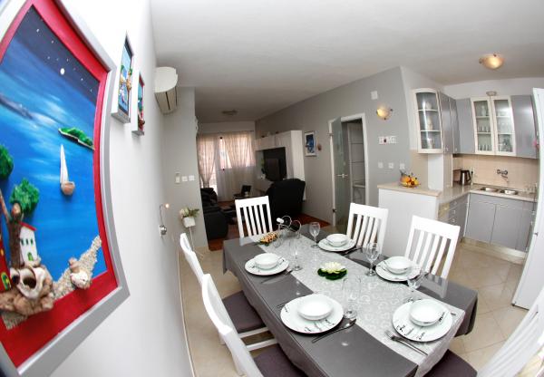 Apartamenty Nikola znajdują się w spokojnym miejscu Mastrinka na wyspie Ciovo. Wszystkie apartamenty są w pełni wyposażone i nowocześnie i luksusowo nowo umeblowane, a właściciel jest do Państwa dyspozycji 24 godziny na dobę. Apartamenty znajdują się 50 metrów od morza i kawiarni oraz 200 metrów od restauracji, kortów tenisowych i innych dodatkowych udogodnień morskich, Idealne na rodzinne wakacje. Oba apartamenty mają piękny widok na morze. Cena zawiera podatek turystyczny, wi fi, klimatyzację i parking.