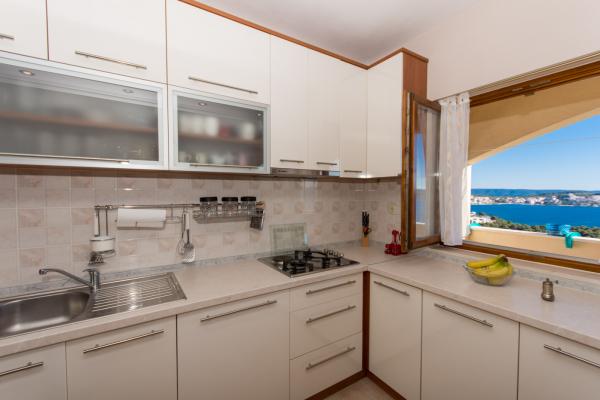 W pełni wyposażone i nowoczesne apartamenty z 3 sypialnie, duża łazienka z narożną wanną (toaleta), 1 mała łazienka z prysznicem masaż (toaleta), luksusowy kuchnia z wszystkich urządzeń i dużym salonem. W spokojnej okolicy Trogir, Ciovo przez most, z dużym balkonem, z którego można zobaczyć piękny widok na morze. Super panorama. Obiekt położony jest 15 minut spacerem do centrum i 5 minut do plaży. Duży parking (2 miejsca) jedynymi gośćmi. Gospodarze, którzy są zawsze dostępne.