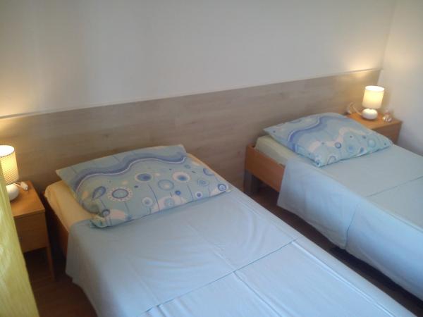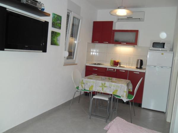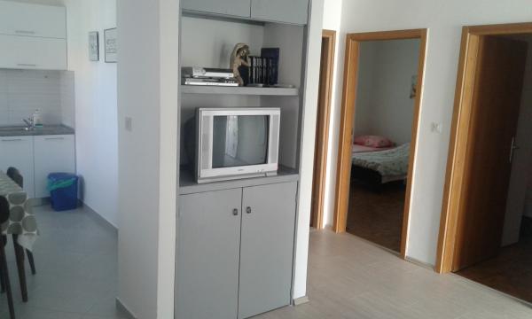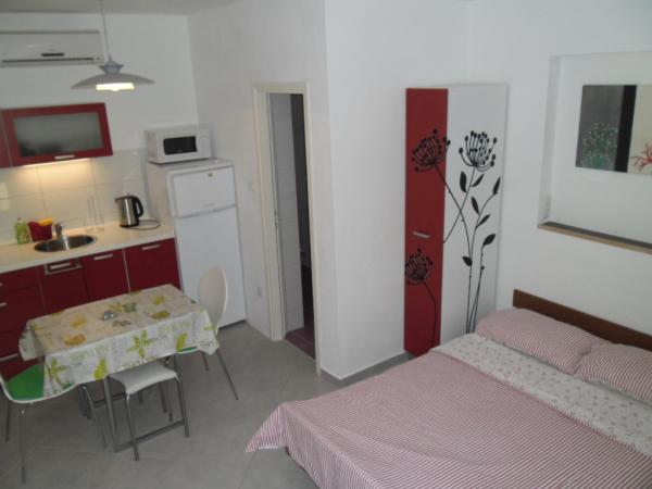 Czyściutki dobrze wyposażony duży apartament. Czyste i zadbane obejście domu z bardzo fajnym grillem i prysznicem na wolnym powietrzu. W pobliżu kilka restauracyjek , w których można smacznie i za przyzwoitą cenę uzupełnić kalorie. Blisko jest również sklep TOMMY oferujący szeroki wachlarz artykułów. Właściciele to osobna historia. Tak miłych, sympatycznych, gościnnych i zawsze uśmiechniętych ludzi trudno dzisiaj spotkać. Z czystym sumieniem mogę polecić pobyt w apartamentach Gizdić !