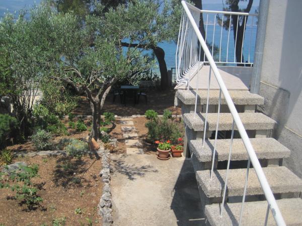 Apartament znajduje się blisko morza, na wyjście z ogrodu znajduje się na plaży. Restauracja, sklepy, bary, wynajem rowerów, wynajem skuterów są w odległości 100 metrów od obiektu. Parking przy budynku jest ogrodzony i. Większa miejscem jest miasto Trogir znajduje się 4 km od hotelu, połączone autobusem. Przystanek autobusowy znajduje się 100 m.