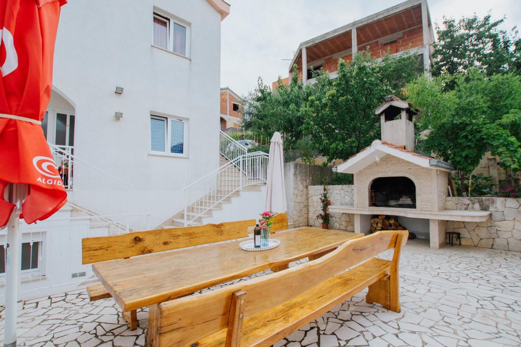 Apartamenty Vrlika znajdują się na wyspie Čiovo, która znajduje się bezpośrednio obok miasta Trogir, a my jesteśmy tylko 2 km od centrum miasta. Budynek położony jest na spokojnym osiedlu rodzinnym i składa się z 3 mieszkań. Najbliższa plaża, sklep i restauracja znajdują się 100 m od obiektu. Wszystkie okoliczne plaże są odpowiednie dla dzieci i dorosłych i zapewniają dużo naturalnego cienia. Skontaktuj się z nami, aby uzyskać dodatkowe informacje!