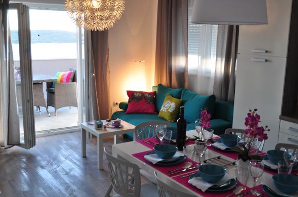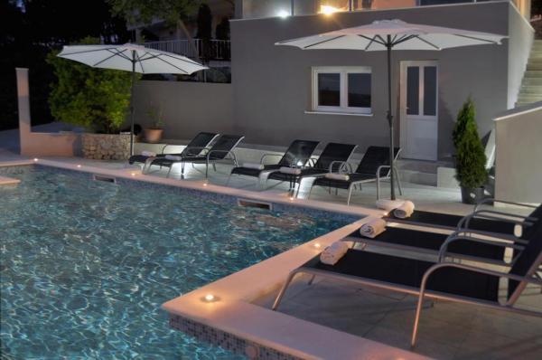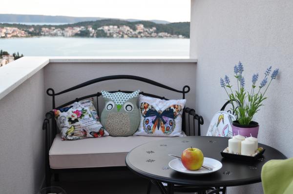 Bonaria Apartamenty położone są na wzniesieniu części wyspy Ciovo, Balan, w nowoczesnym budynku odnowionym w 2014 roku. Dom rodzinny ma pięć luksusowych apartamentów z balkonami, duży basen, parking, grill na świeżym powietrzu i plac zabaw dla dzieci umieszczonym na basenie. Na północy, w otoczeniu ciszy gęstego lasu sosnowego na południu otwarty dla widokiem na morze i piękne zachody słońca. Z historycznego miasta Trogir znajduje się zaledwie 700 metrów od lotniska Resnik znajduje się 5 km od miasta Split 25 km. Na wyspie Čiovo znajdują się liczne plaże, najbardziej znana plaża Saldun, z widokiem na przystań i wiele dziennych i nocnych działań, takich jak bary na plaży, sportów wodnych i nurkowania. Chcesz cieszyć się ciszą i szumem fal wybrać jeden z mniejszych, cichszych plaż, rozrzuconych po wyspie, z dala od tłumów.