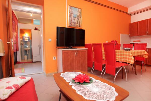 Nowoczesne mieszkanie 85m2, znajduje się w rodzinnym domu w cichej części wyspy Ciovo, 500m od plaży i jest idealnym miejscem na letnie wakacje rodzin z dziećmi. Mieszkanie składa się z dwóch pokoi (16m2, 16m2), z czteroma dostawkami, kuchnia, pokój dzienny, dwie łazienki wyposażone w prysznic, przestronny dziedziniec z ochrony przed słońcem. Stocznia jest miejsce parkingowe na dwa samochody i grillem. Apartament posiada klimatyzację (nie płatny), bezpłatny bezprzewodowy internet, dostawka dla dzieci i krzesła dla dzieci do karmienia, telewizję satelitarną (plazma). Pralka jest wliczone w cenę, stacjonarny telefon do połączeń alarmowych, ekspres do kawy, kuchenka mikrofalowa itp.