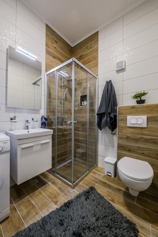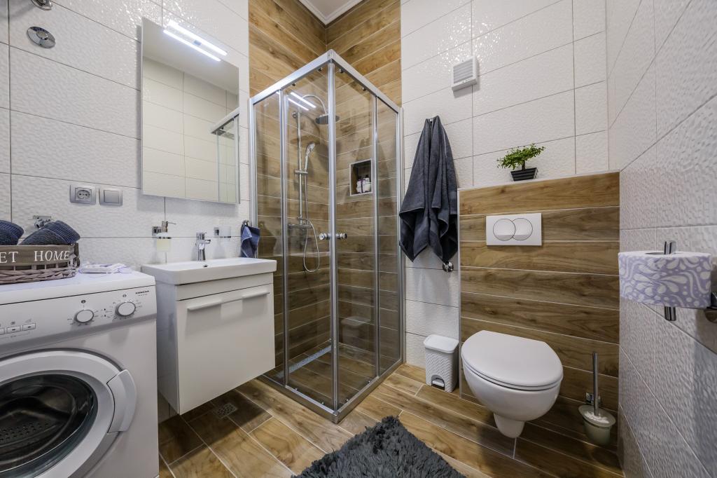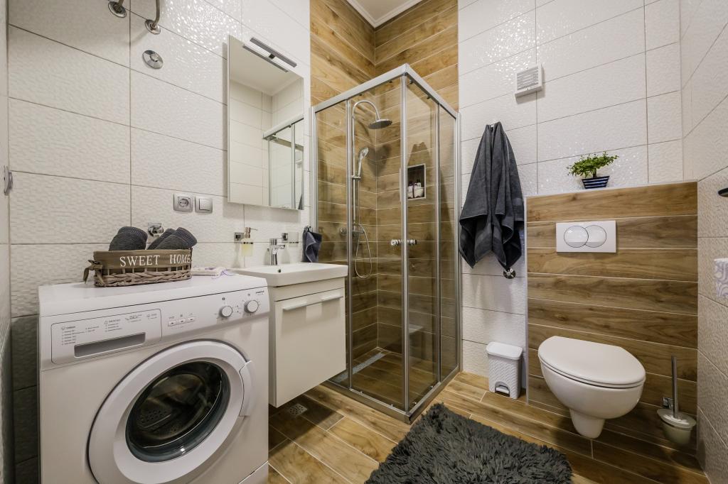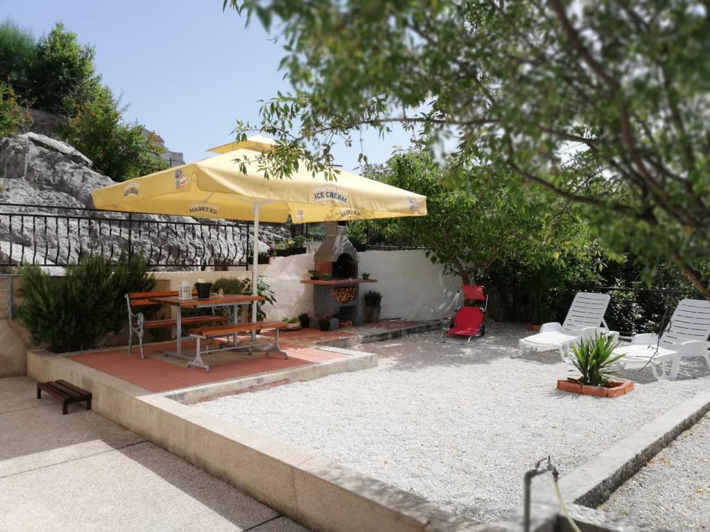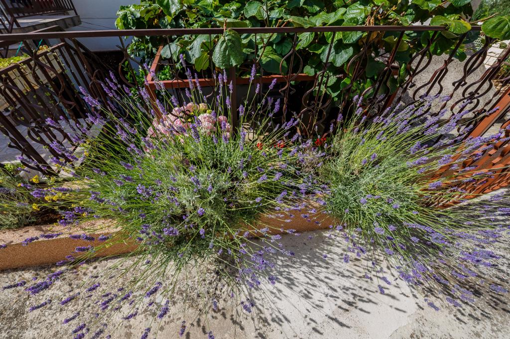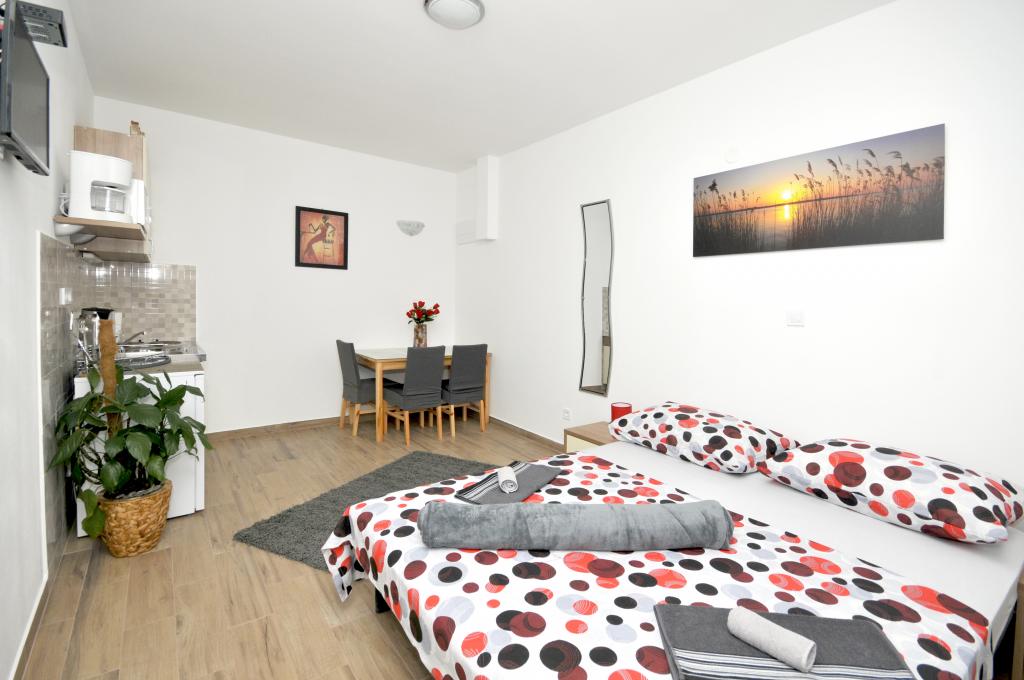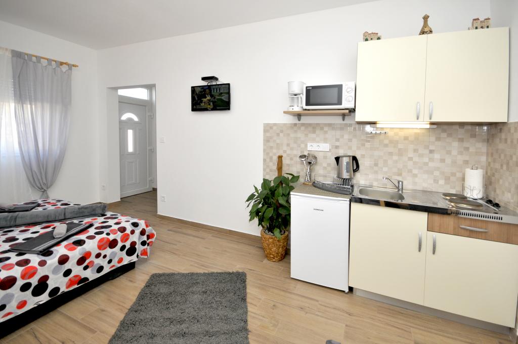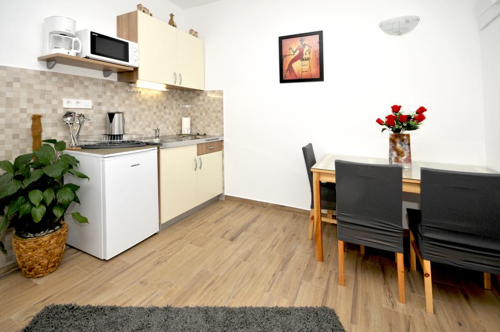 Mieszkanie położone jest na wyspie Ciovo, w odległości 300 metrów od centrum miasta i 600 metrów od plaży. Apartament jest w pełni wyposażony w dwie sypialnie, pokój dzienny, kuchnia, WC. Wielkości 75 metrów kwadratowych, obejmuje bezprzewodowy dostęp do Internetu, klimatyzację, dwa LCD, telewizję satelitarną z 500 kanałów. Apartament posiada taras z widokiem na ogród, plac zabaw (zjeżdżalnia, huśtawka, huśtawka), grill i Trogir. Bezpłatny parking znajduje się w pobliżu mieszkania.
