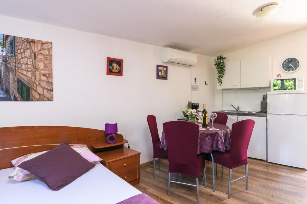 Znajdujemy się w spokojnej części Trogiru, z dala od centrum jakiegoś 400m, a od najbliższych sklepów, aptek, ryb i zielony rynek. Nasz obiekt składa się z dwóch jednostek, które są nowoczesne, klimatyzowane i wyposażone w bezpłatny parking dla samochodu, jak również bezprzewodowy dostęp do Internetu.